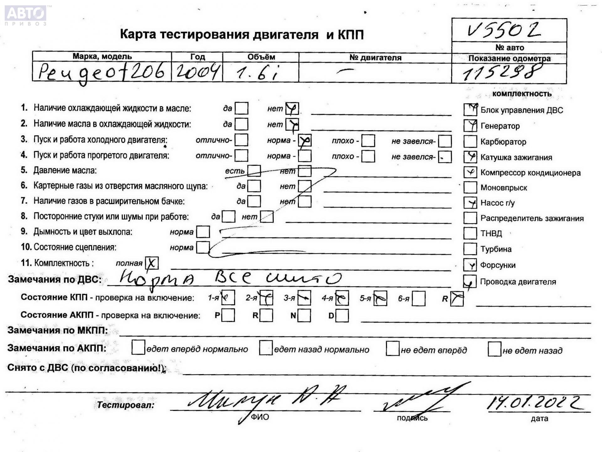 | Марка / Модель / Год: | Peugeot 206 2004 |