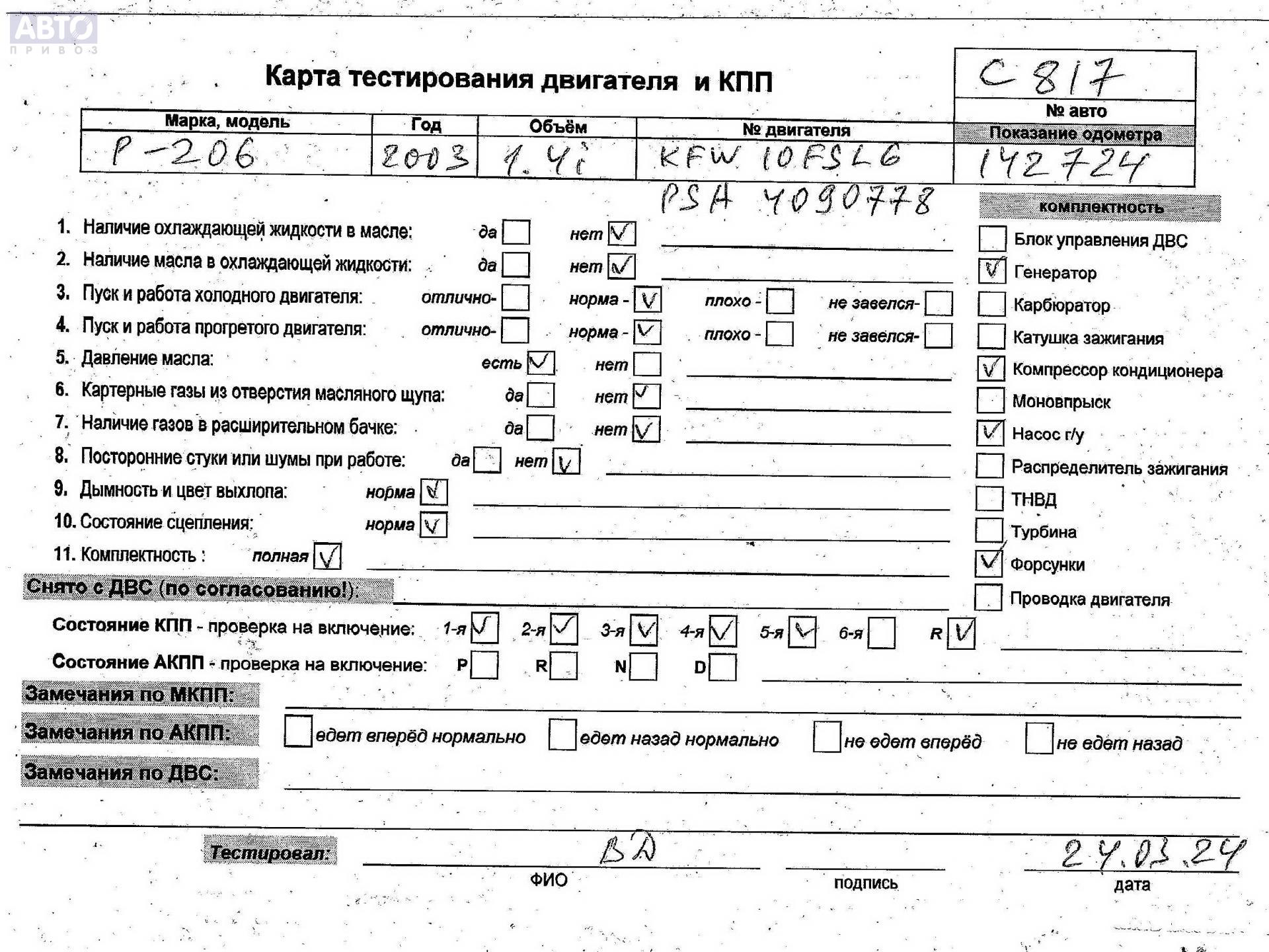 | Марка / Модель / Год: | Peugeot 206 2003 |
