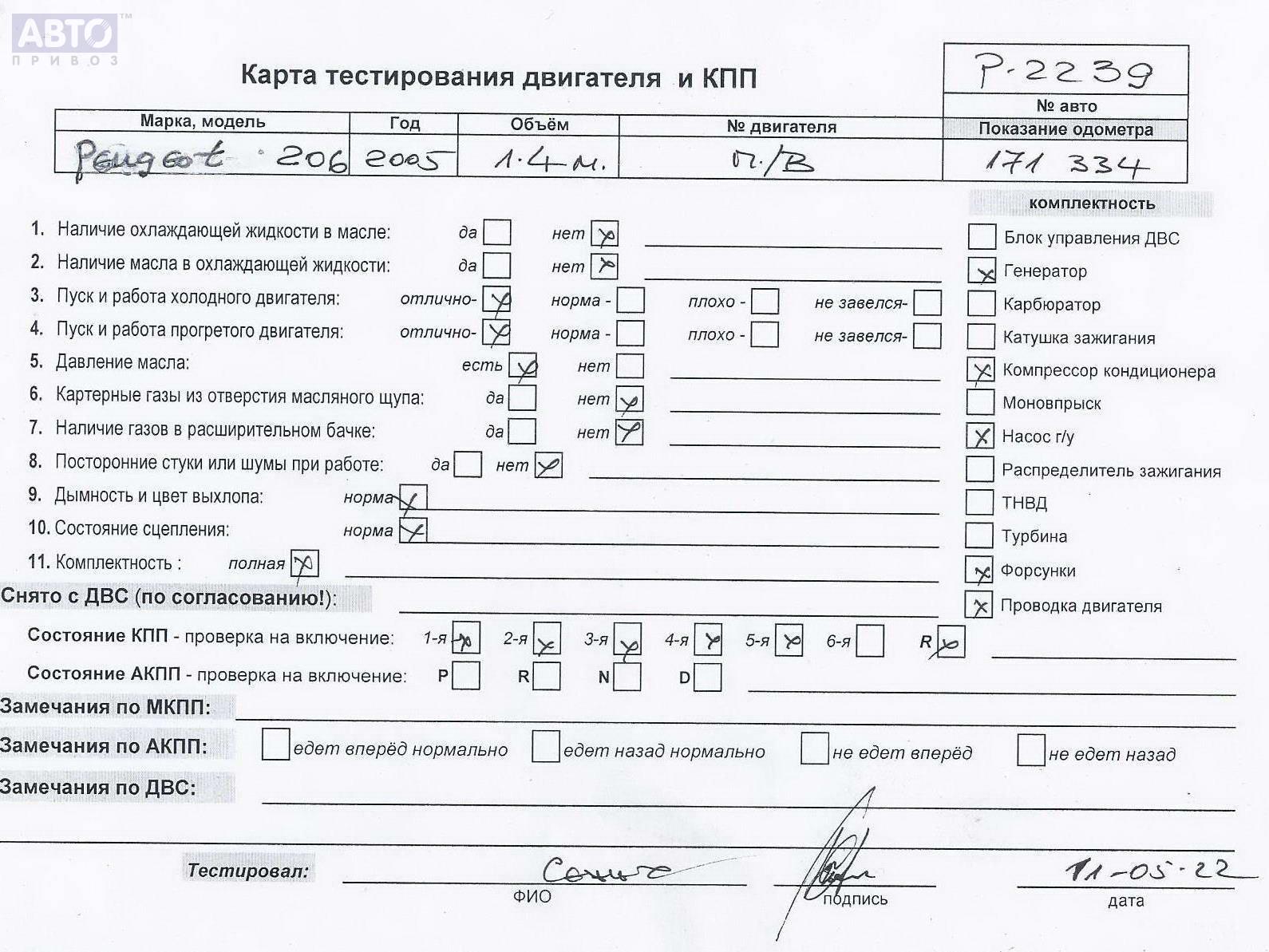 | Марка / Модель / Год: | Peugeot 206 2005 |