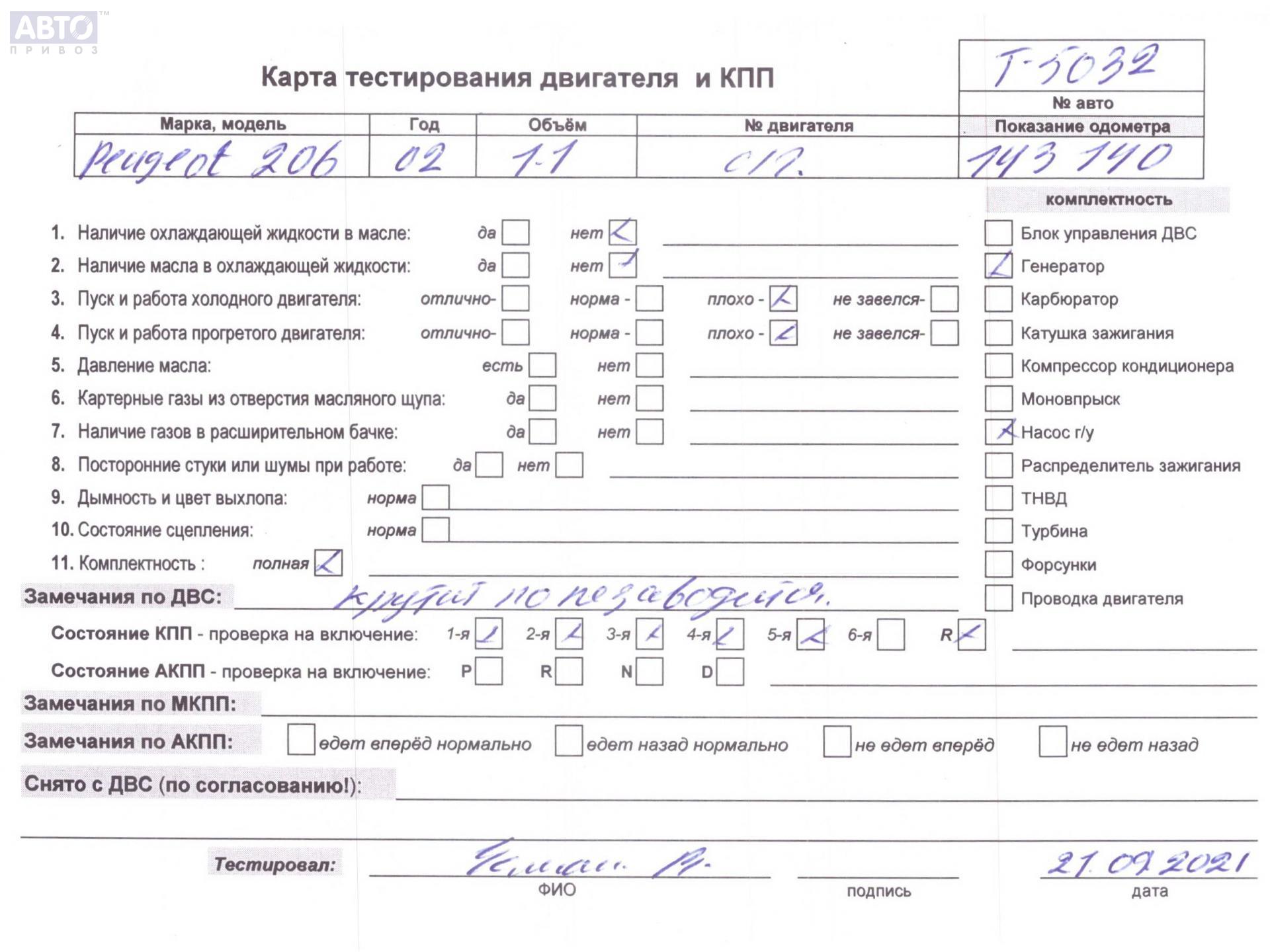 | Марка / Модель / Год: | Peugeot 206 2002 |