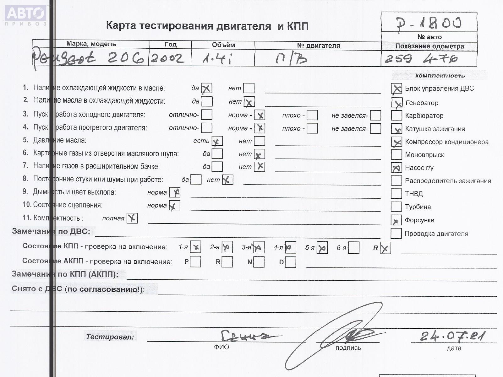 | Марка / Модель / Год: | Peugeot 206 2002 |
