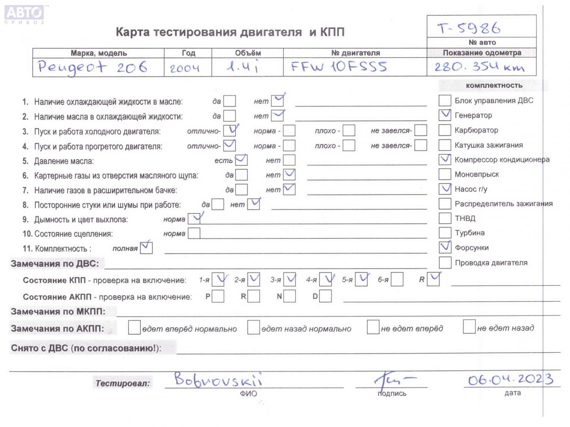 | Марка / Модель / Год: | Peugeot 206 2004 |