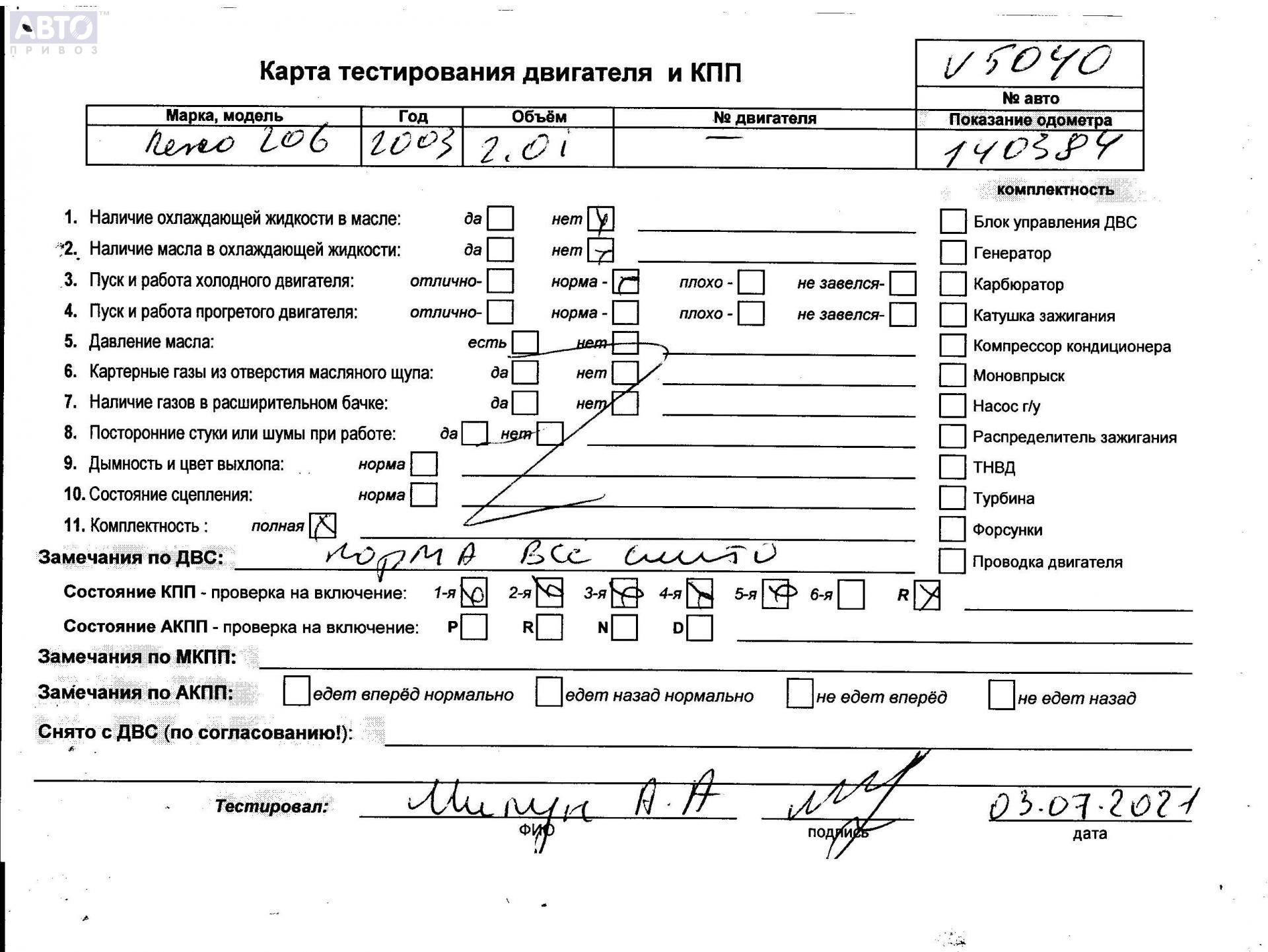 | Марка / Модель / Год: | Peugeot 206 2003 |