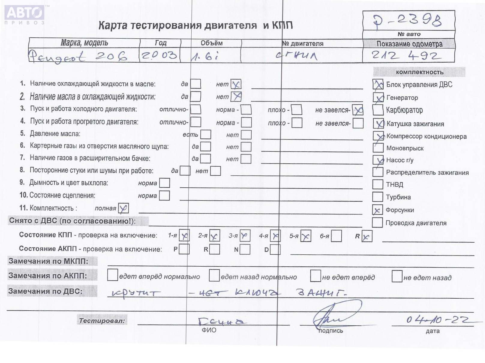 | Марка / Модель / Год: | Peugeot 206 2003 |