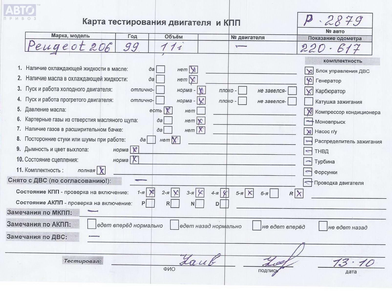 | Марка / Модель / Год: | Peugeot 206 1999 |