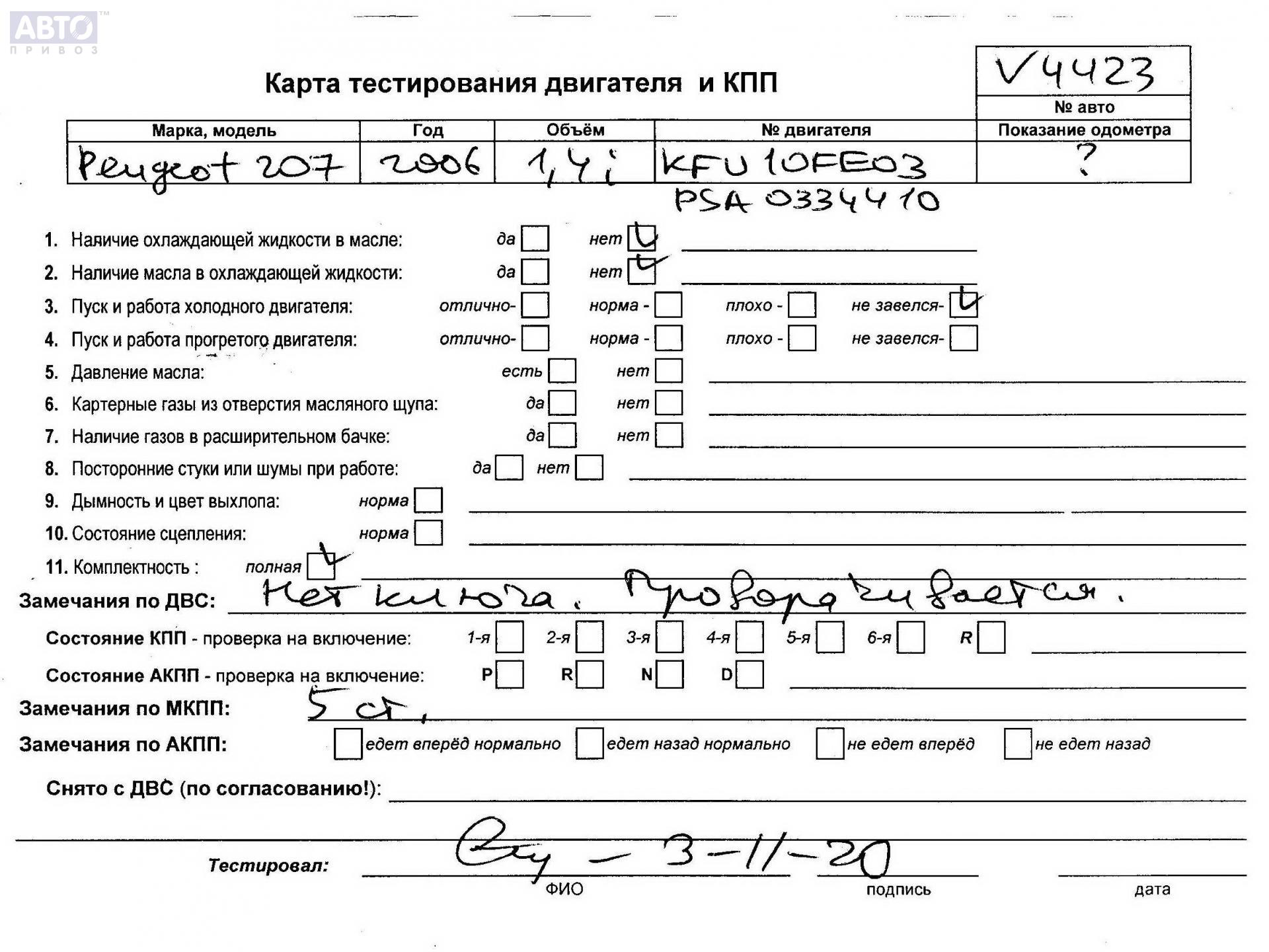| Марка / Модель / Год: | Peugeot 207 2006 |