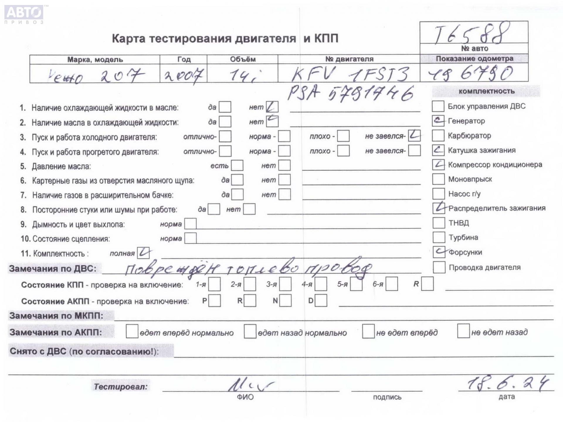 | Автомобиль / VIN: | T6588 VF3WAKFVC34147910 |
