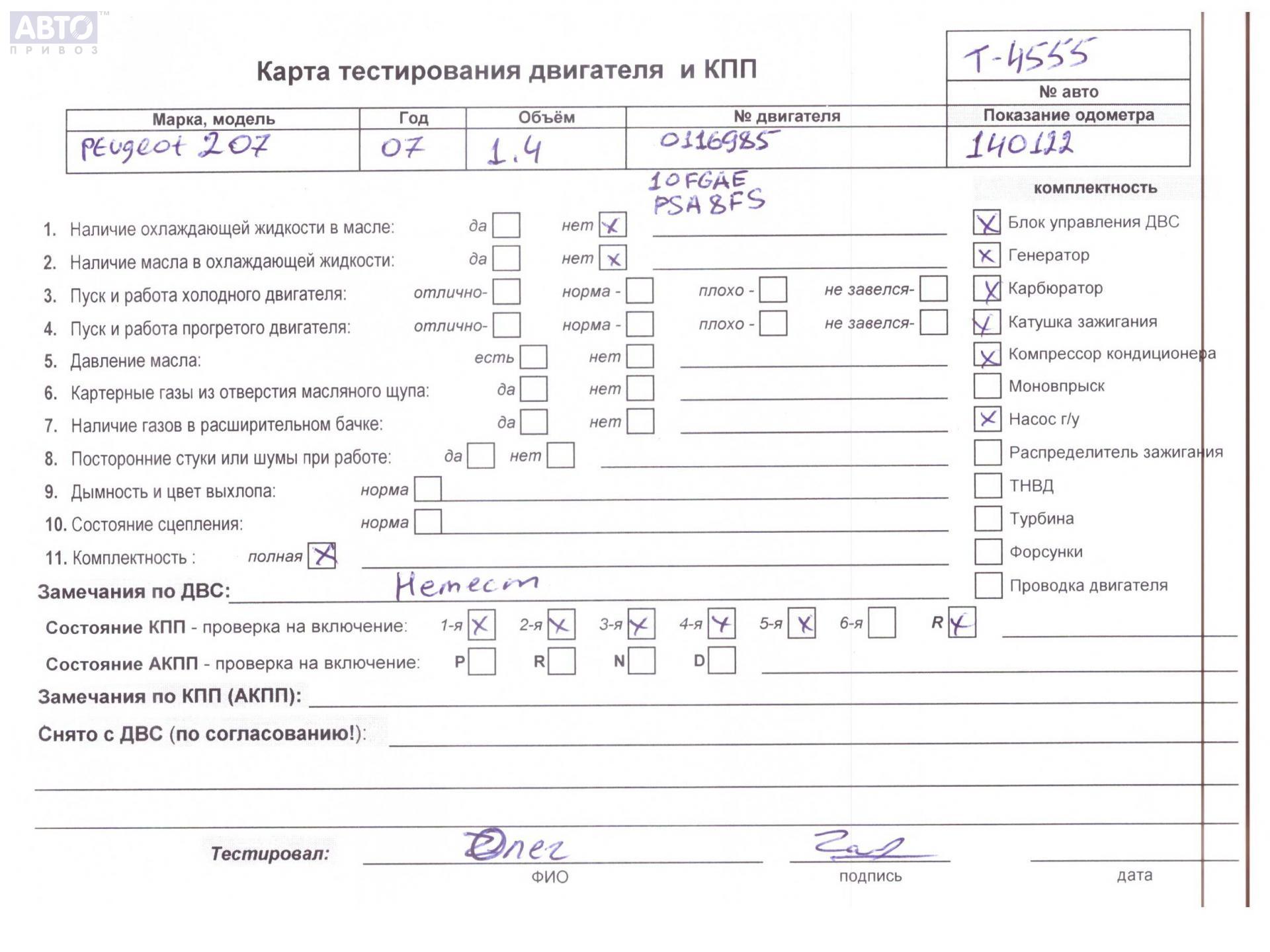| Марка / Модель / Год: | Peugeot 207 2007 |