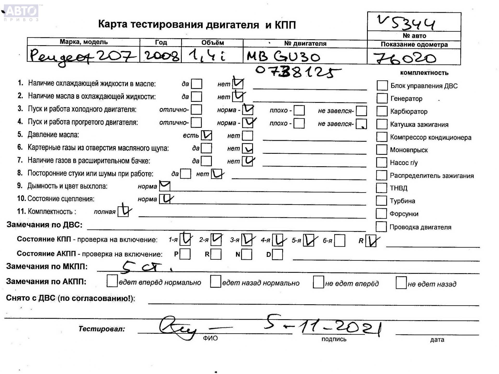 | Автомобиль / VIN: | V5344 VF3WC8FSC34512693 |