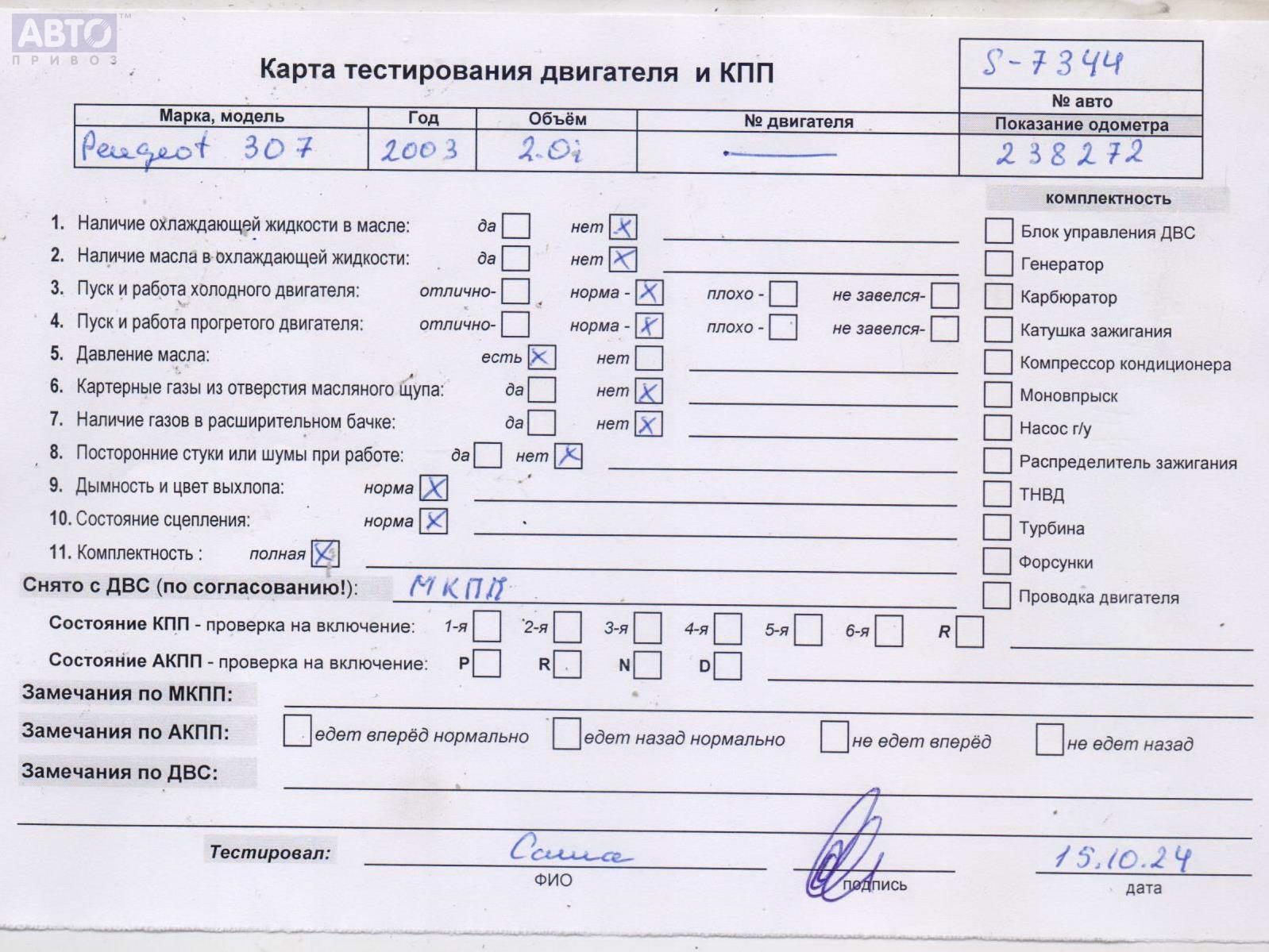 | Марка / Модель / Год: | Peugeot 307 2003 |