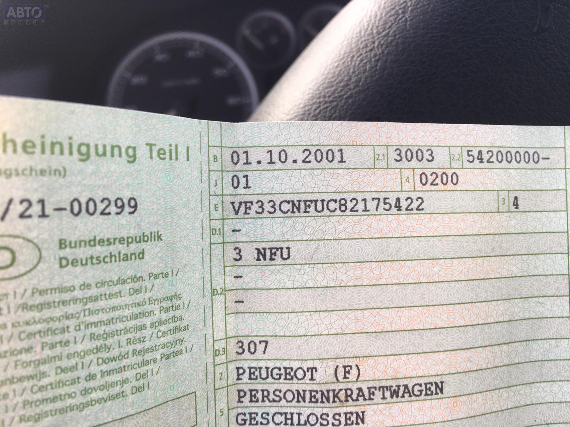 | Марка / Модель / Год: | Peugeot 307 2001 |