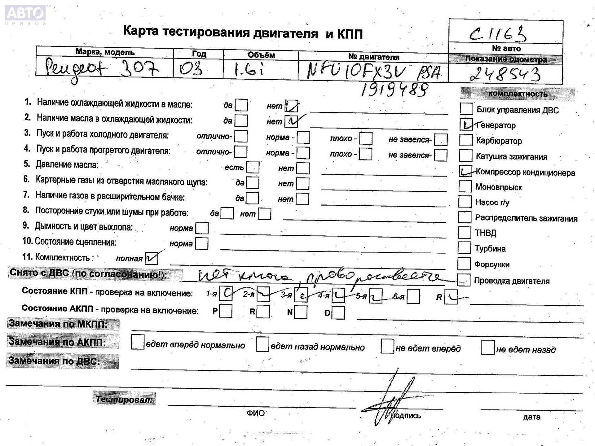 | Марка / Модель / Год: | Peugeot 307 2003 |