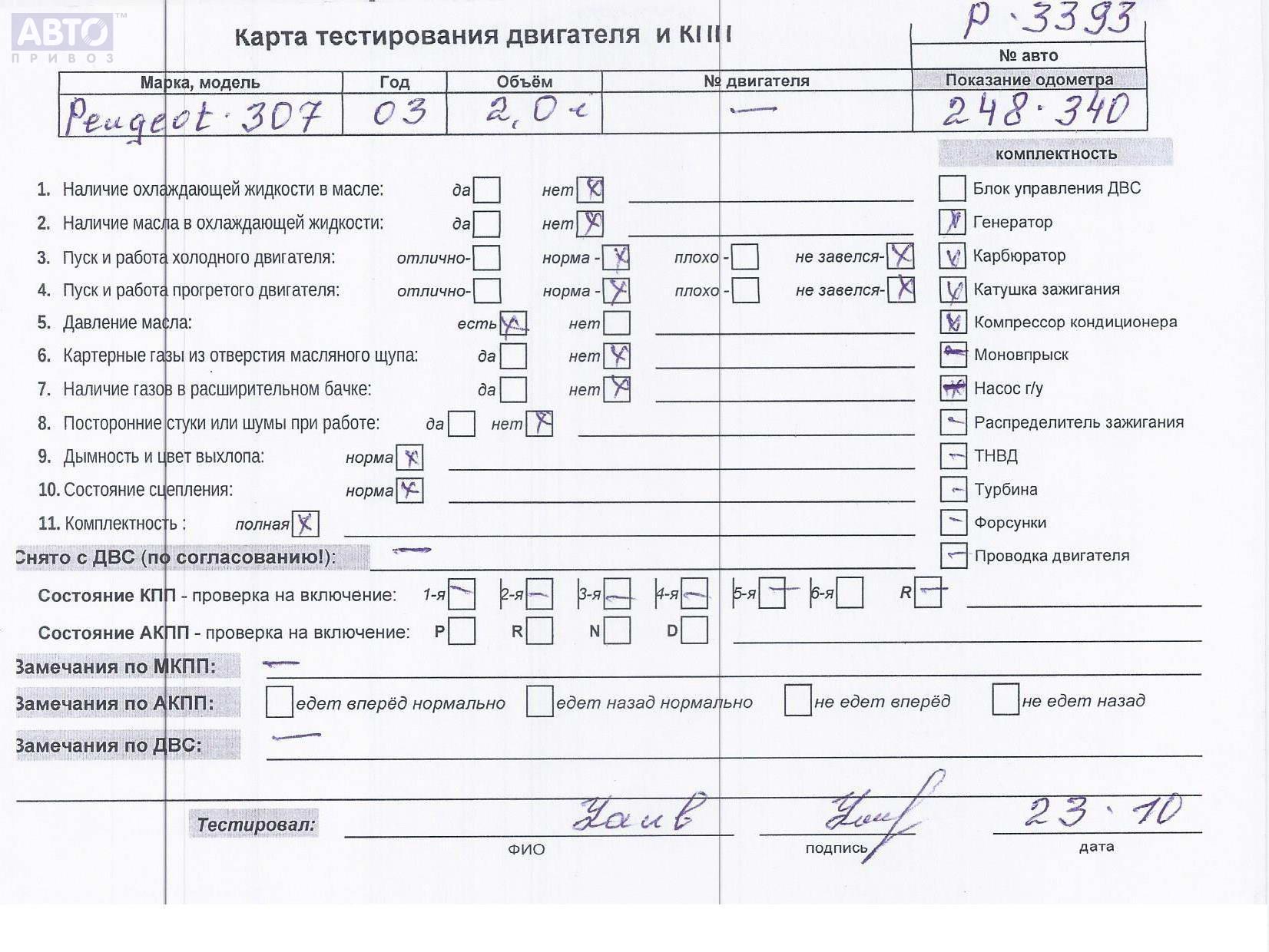| Марка / Модель / Год: | Peugeot 307 2003 |