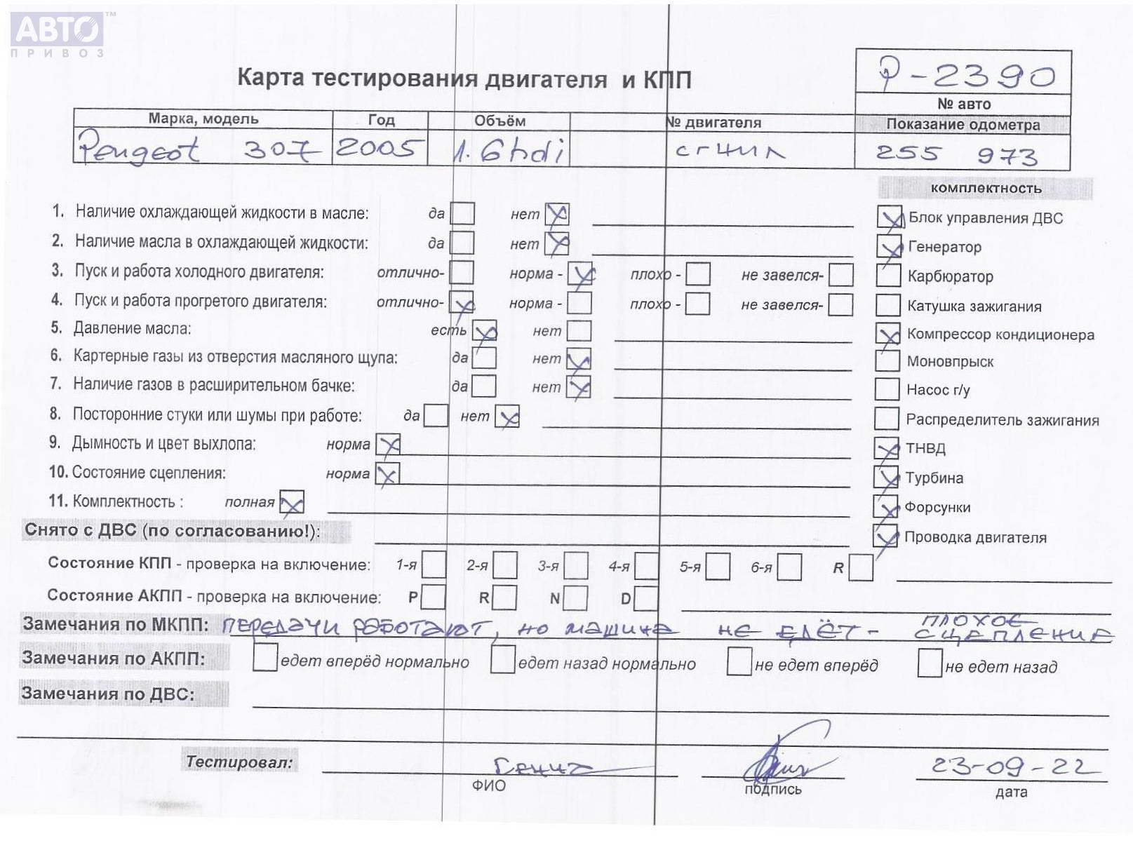 | Марка / Модель / Год: | Peugeot 307 2005 |
