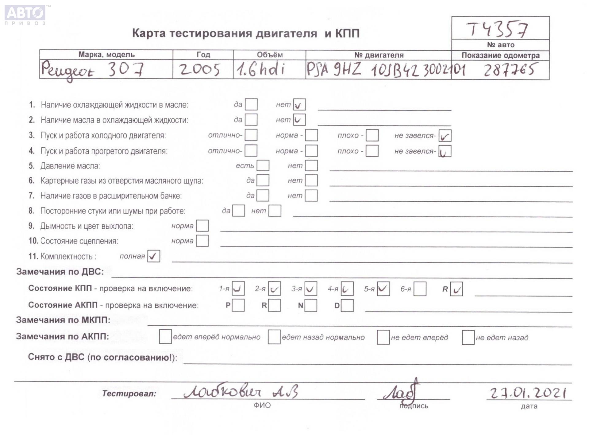 | Марка / Модель / Год: | Peugeot 307 2005 |