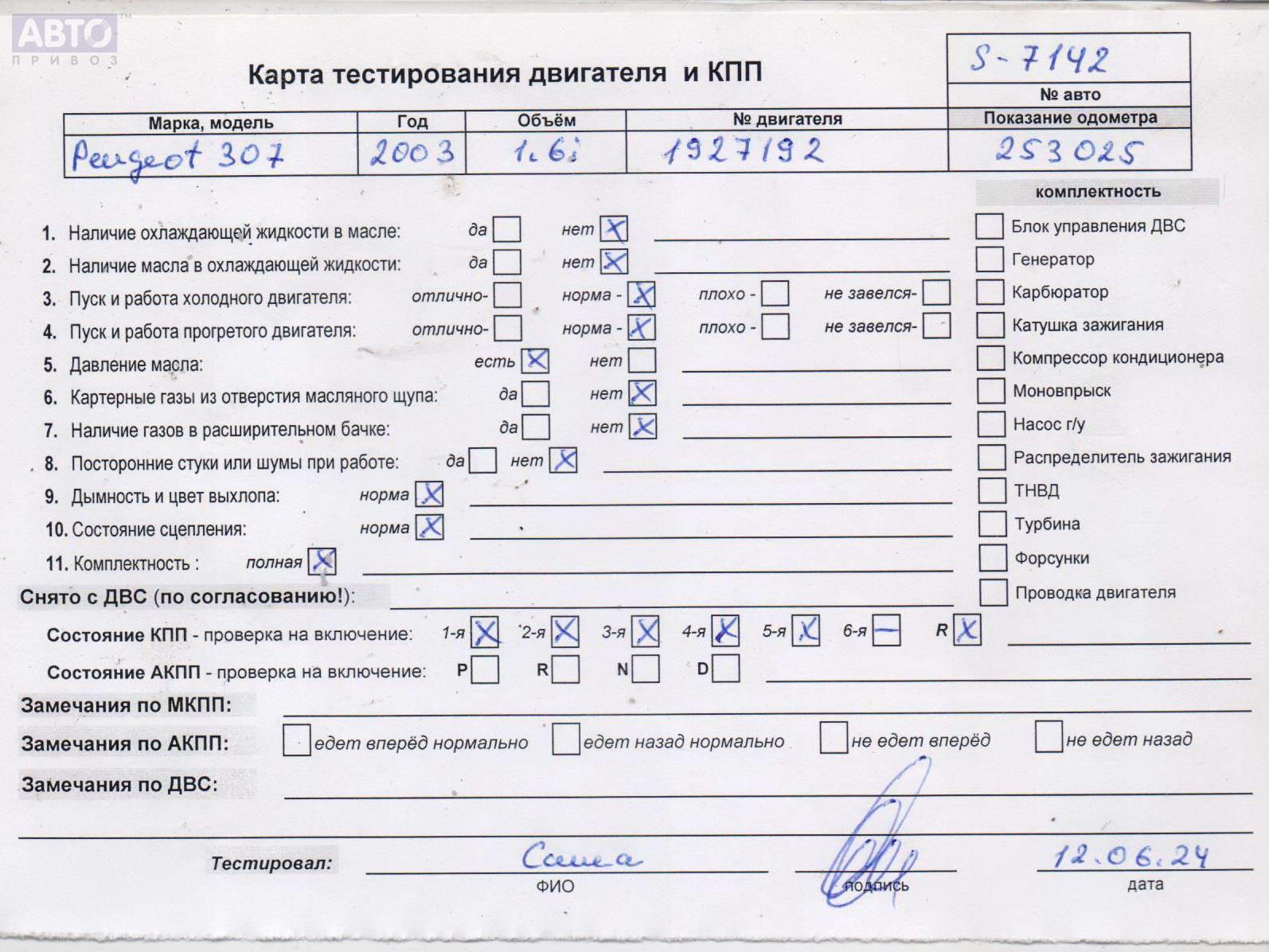 | Марка / Модель / Год: | Peugeot 307 2003 |