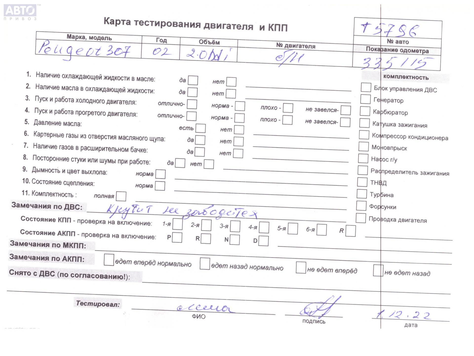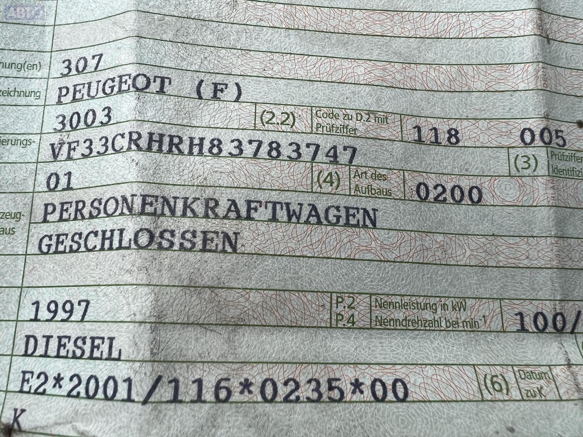 | Марка / Модель / Год: | Peugeot 307 2002 |