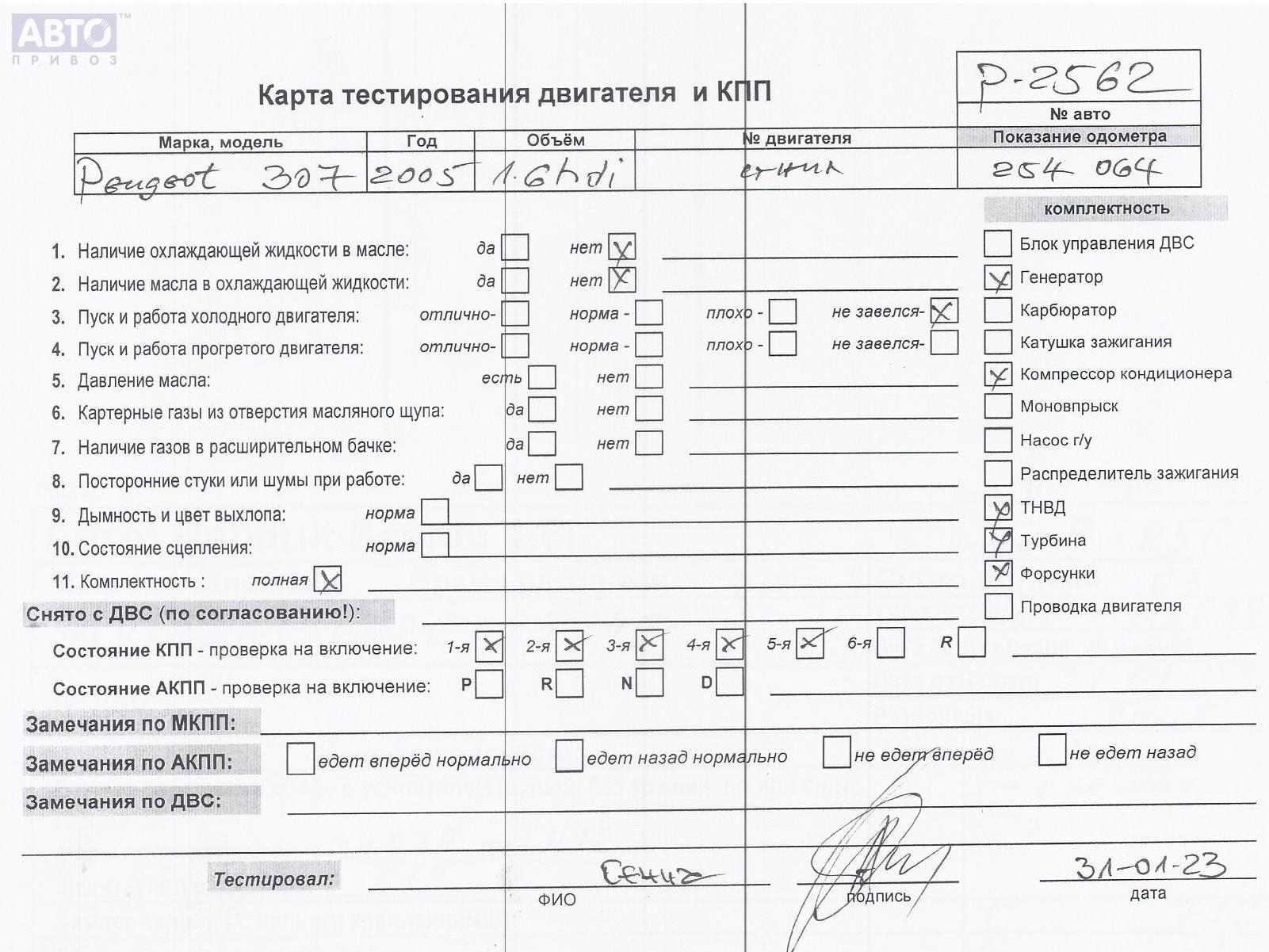 | Марка / Модель / Год: | Peugeot 307 2005 |