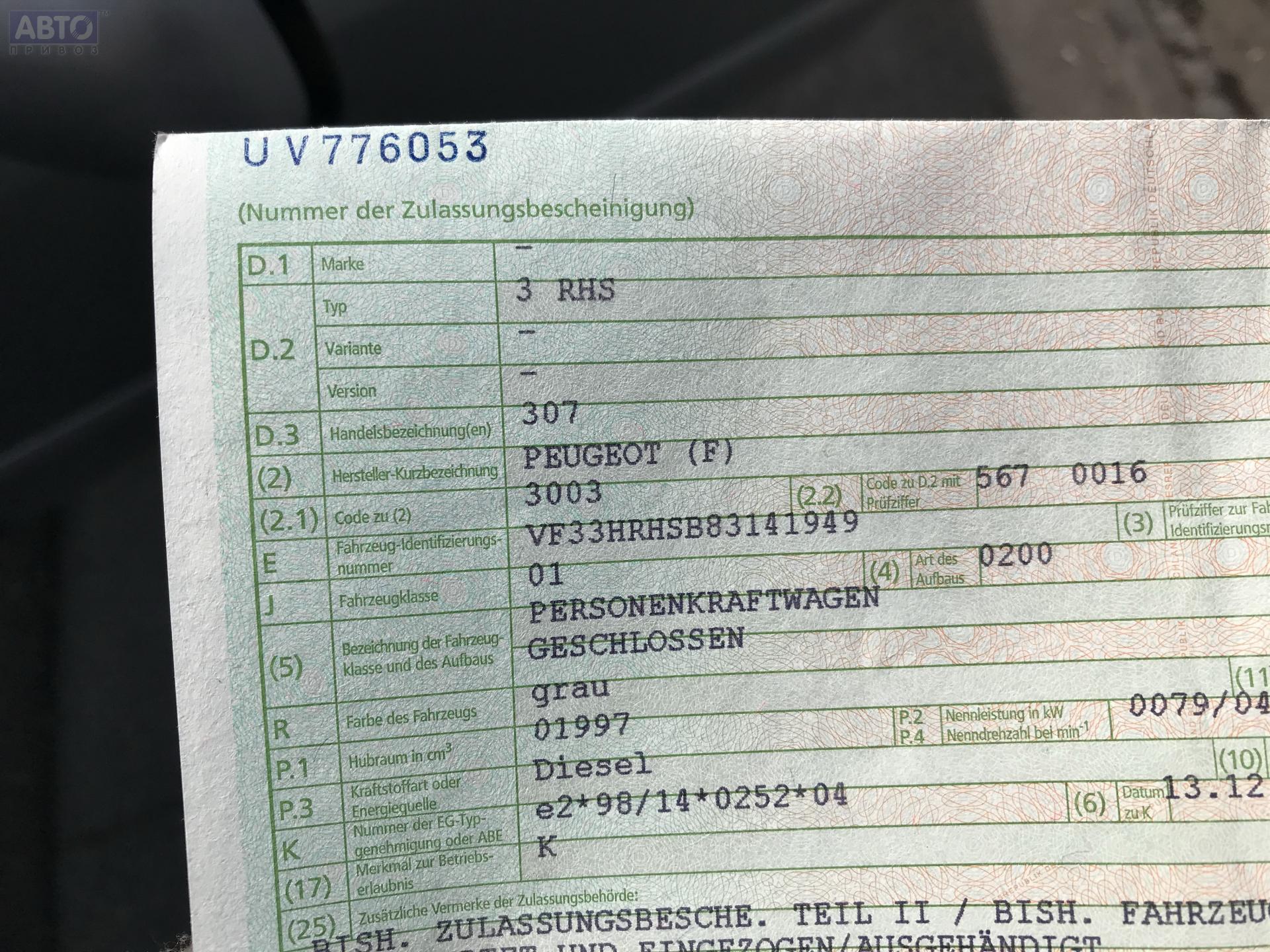 | Марка / Модель / Год: | Peugeot 307 2003 |