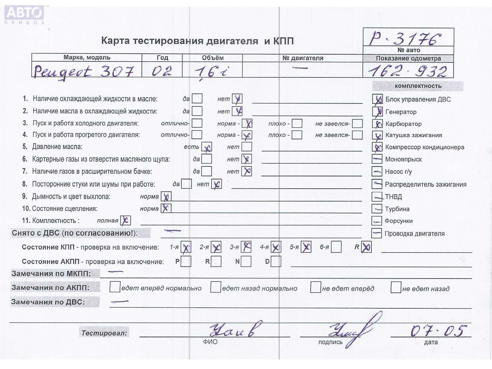| Марка / Модель / Год: | Peugeot 307 2002 |