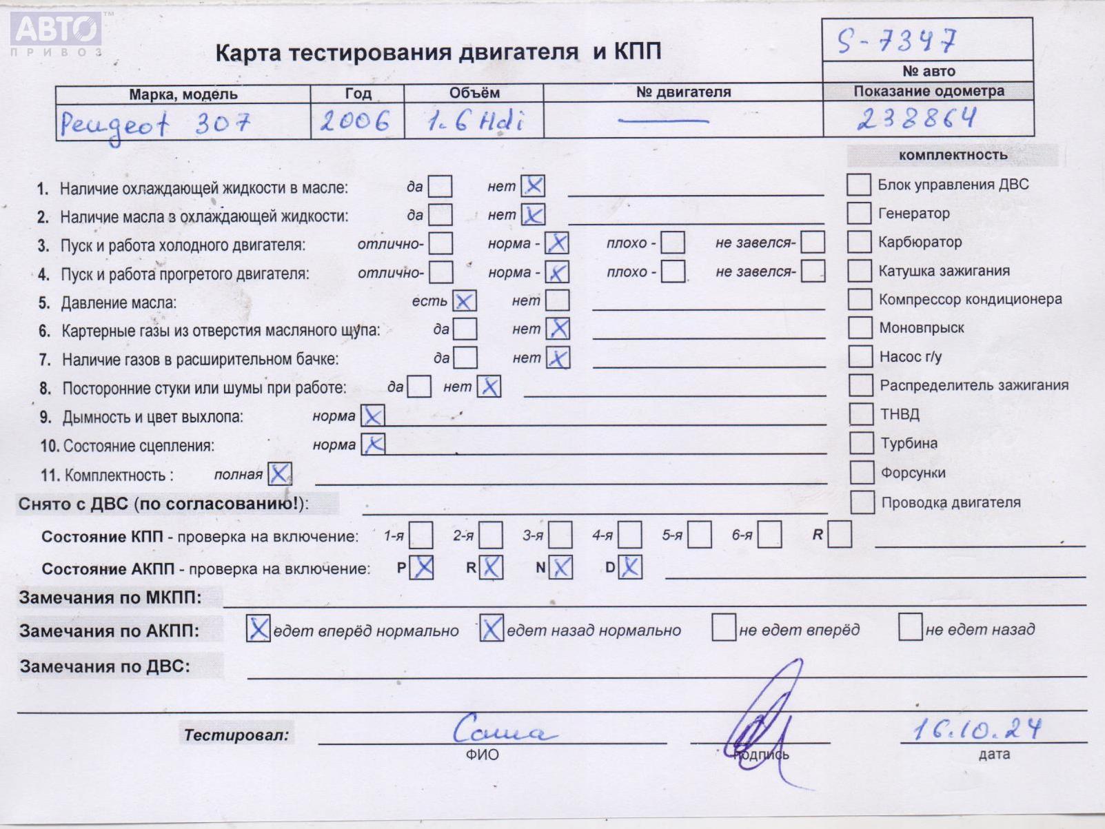| Марка / Модель / Год: | Peugeot 307 2006 |