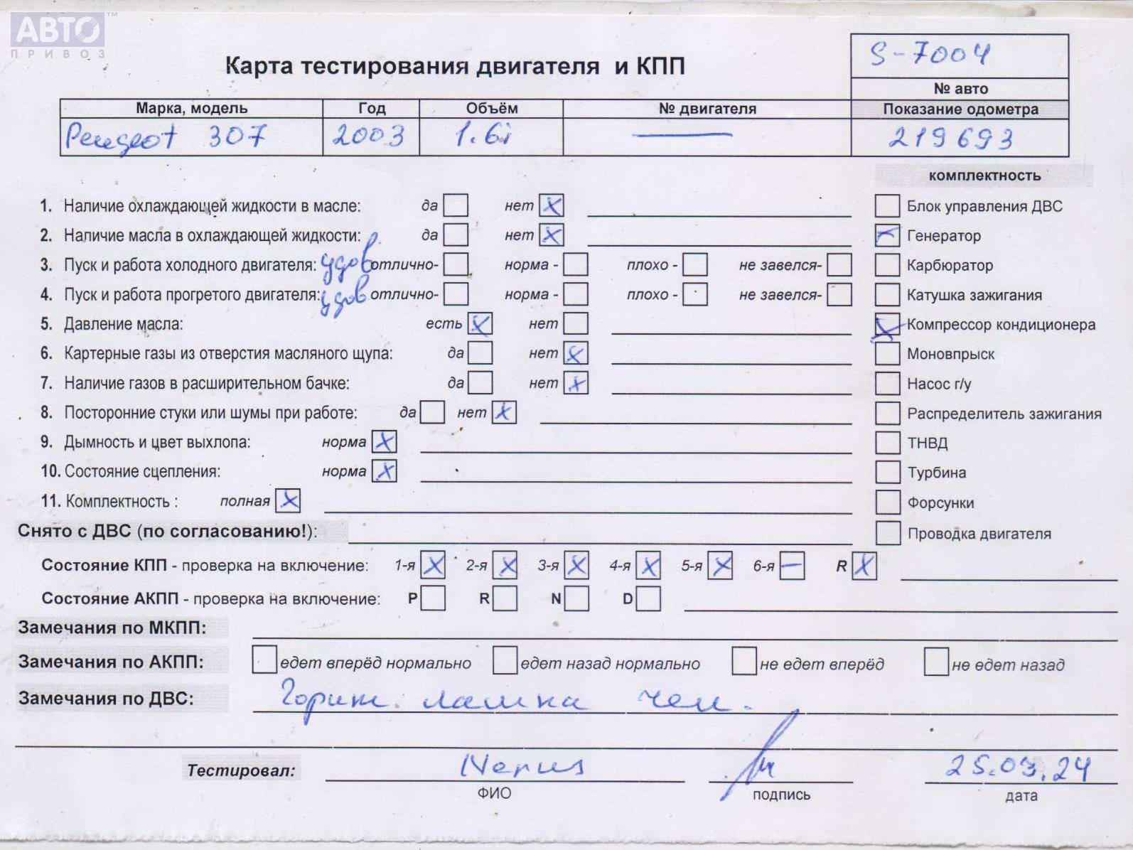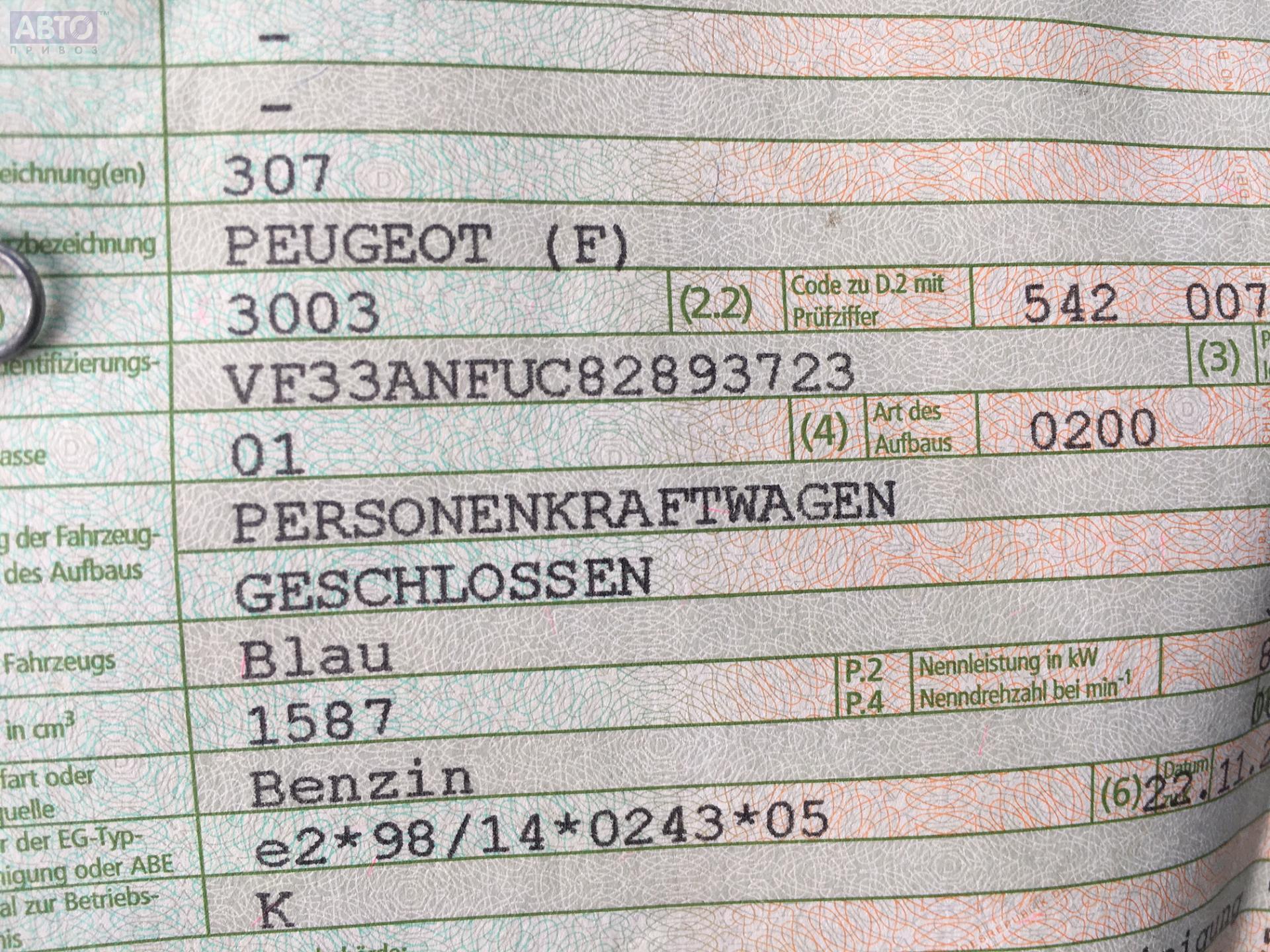 | Марка / Модель / Год: | Peugeot 307 2003 |