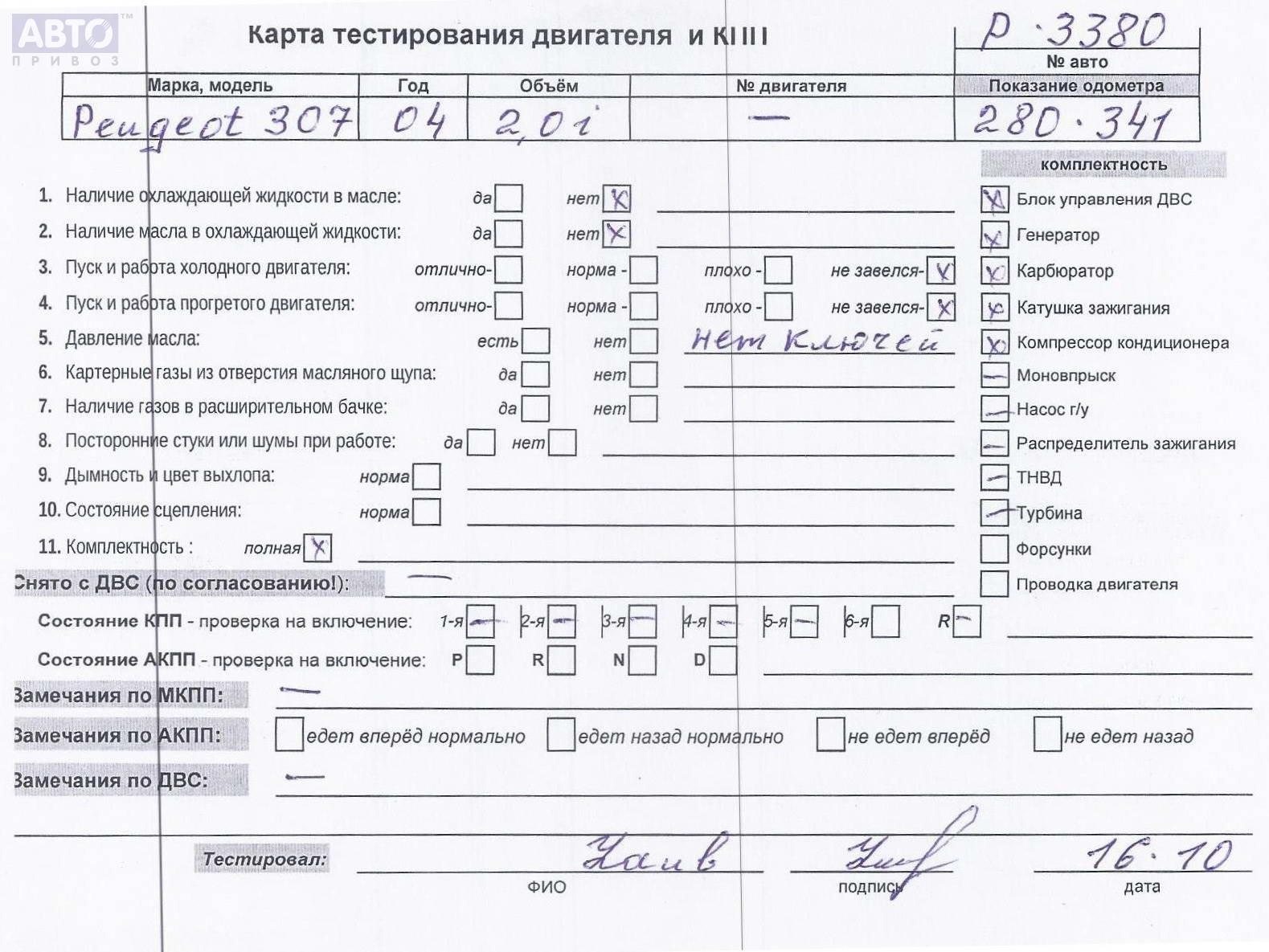 | Марка / Модель / Год: | Peugeot 307 2004 |