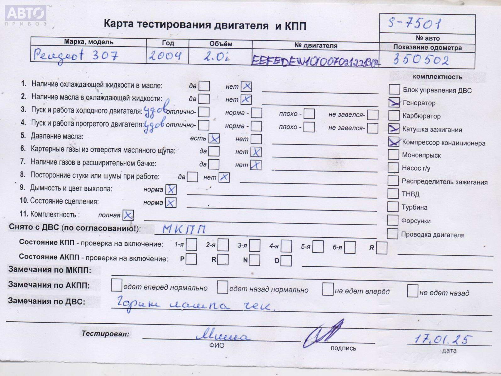 | Марка / Модель / Год: | Peugeot 307 2004 |