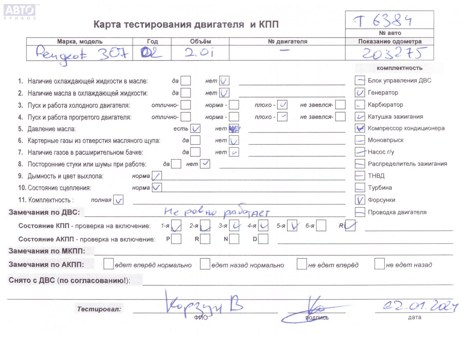 | Марка / Модель / Год: | Peugeot 307 2004 |