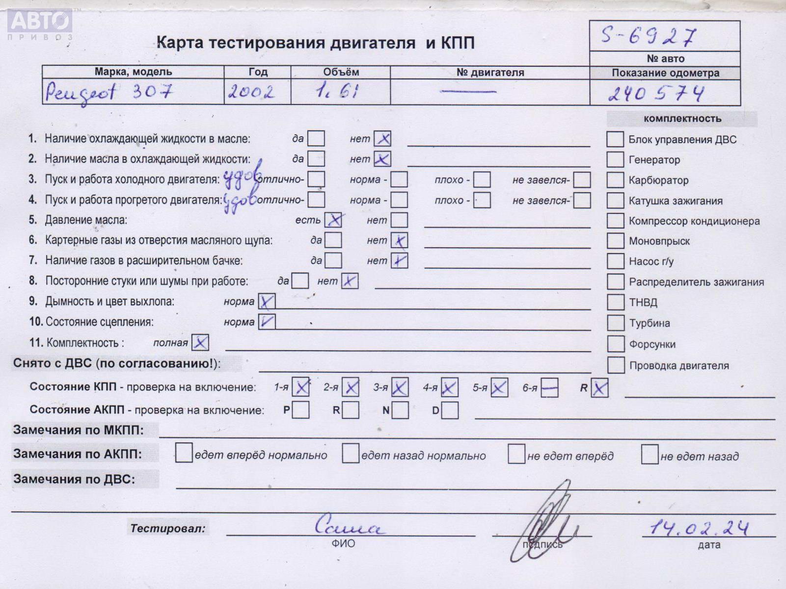 | Марка / Модель / Год: | Peugeot 307 2002 |