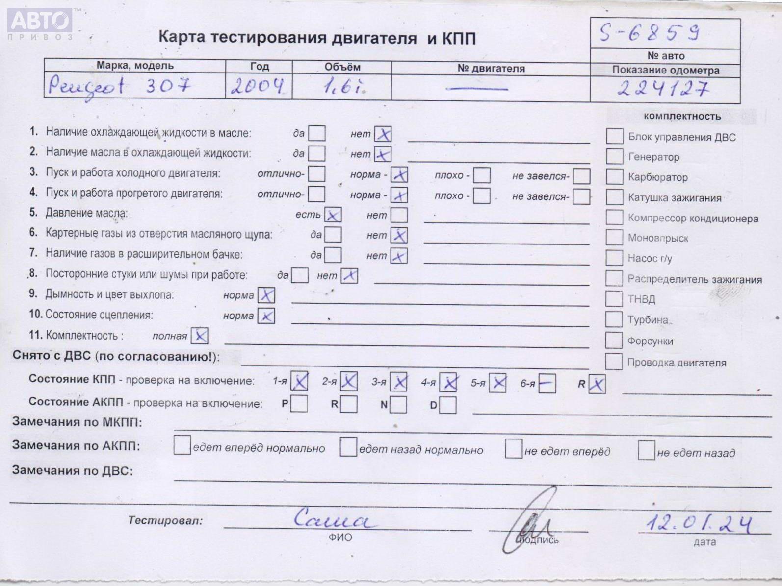| Марка / Модель / Год: | Peugeot 307 2005 |