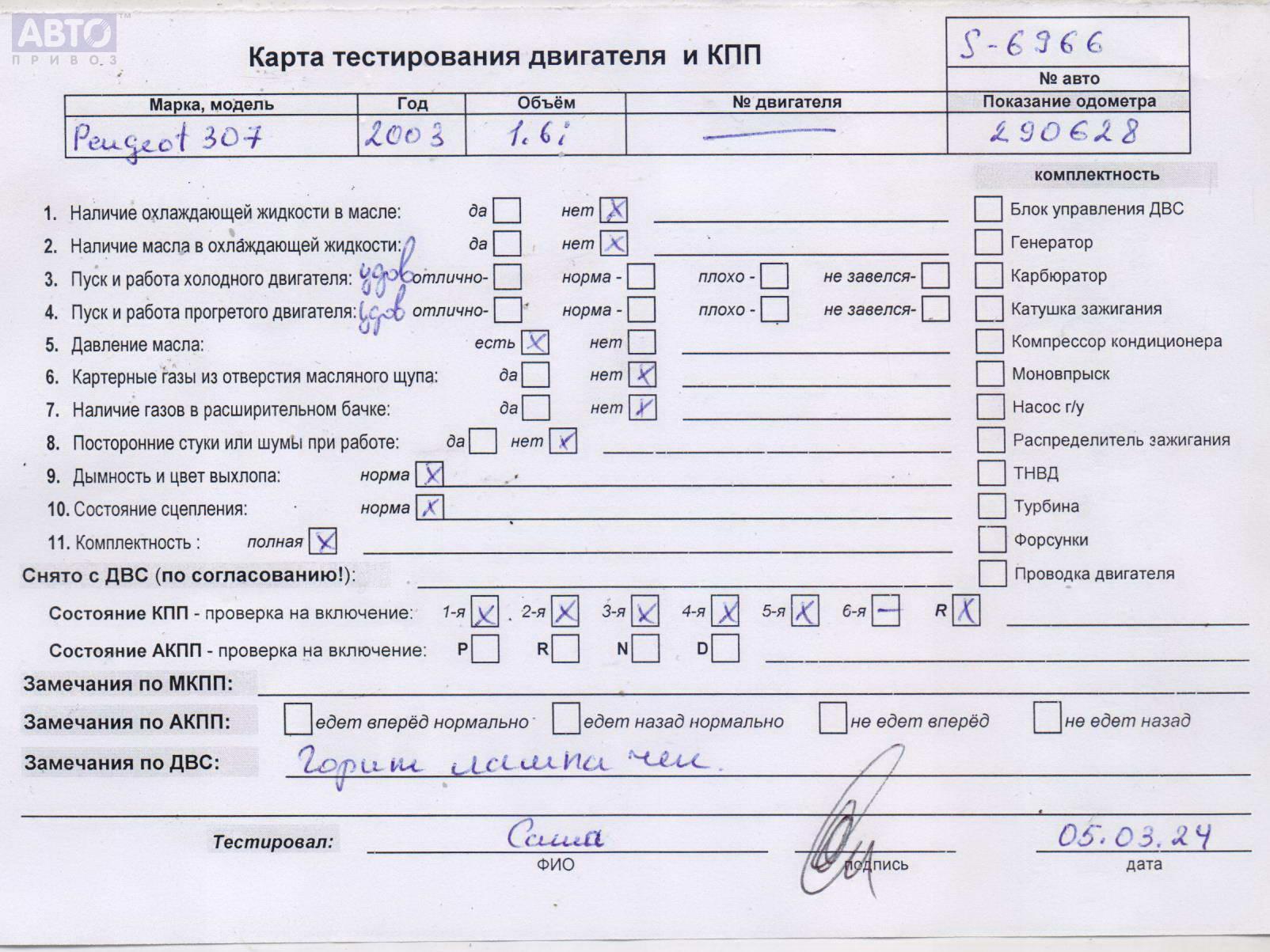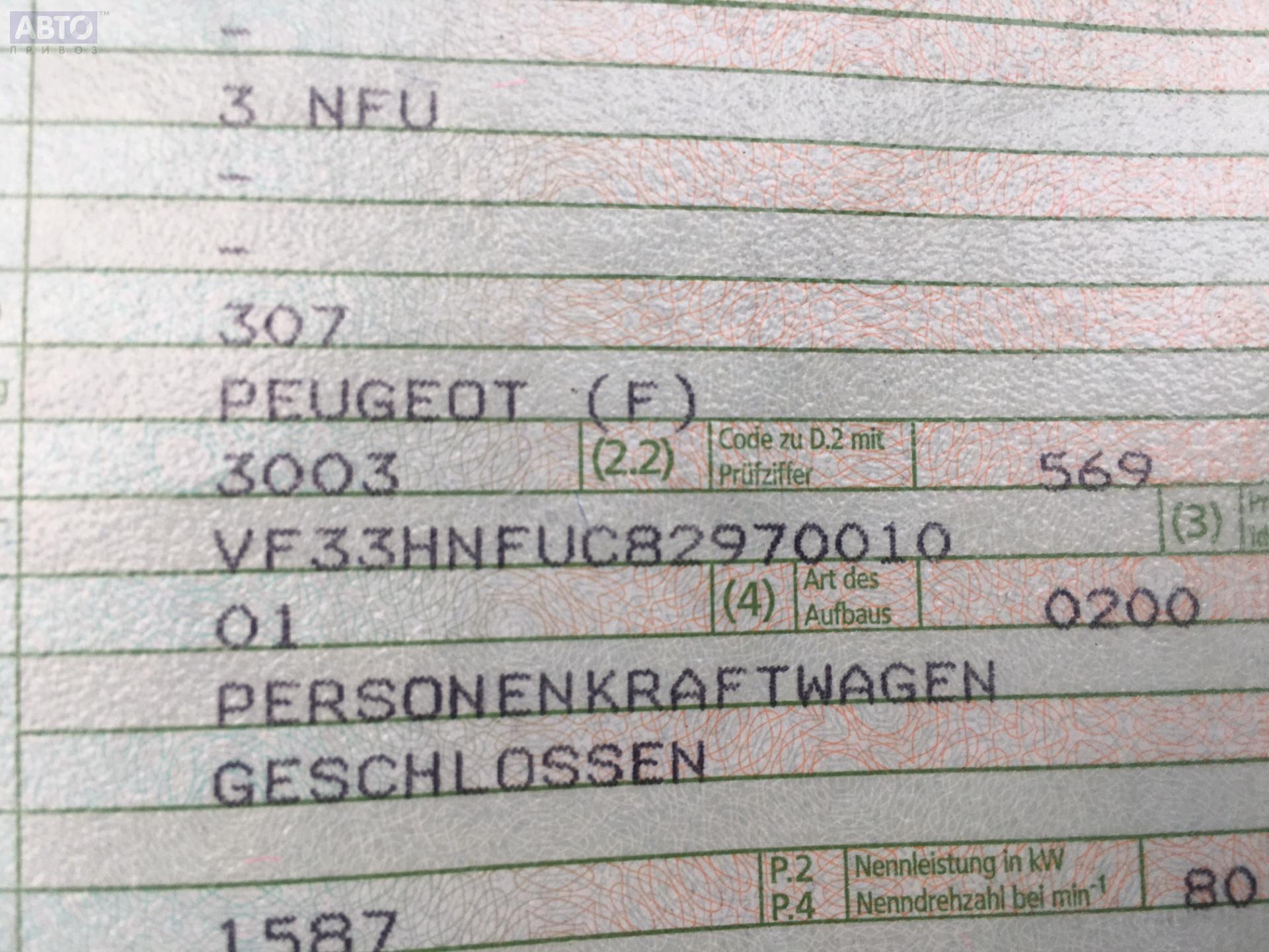| Марка / Модель / Год: | Peugeot 307 2003 |