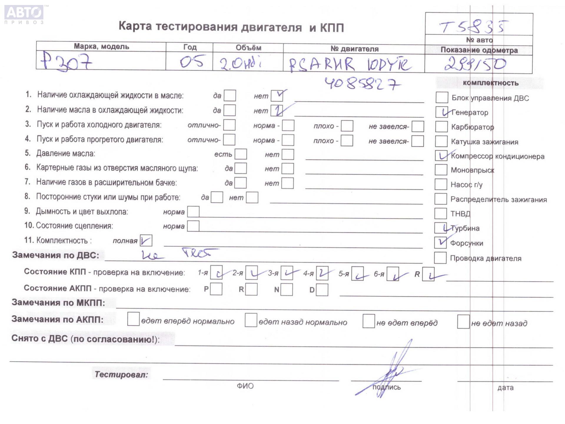 | Марка / Модель / Год: | Peugeot 307 2005 |