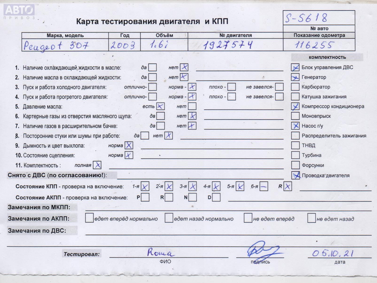 | Марка / Модель / Год: | Peugeot 307 2003 |