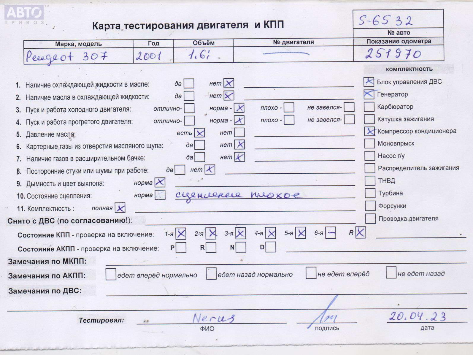 | Марка / Модель / Год: | Peugeot 307 2001 |