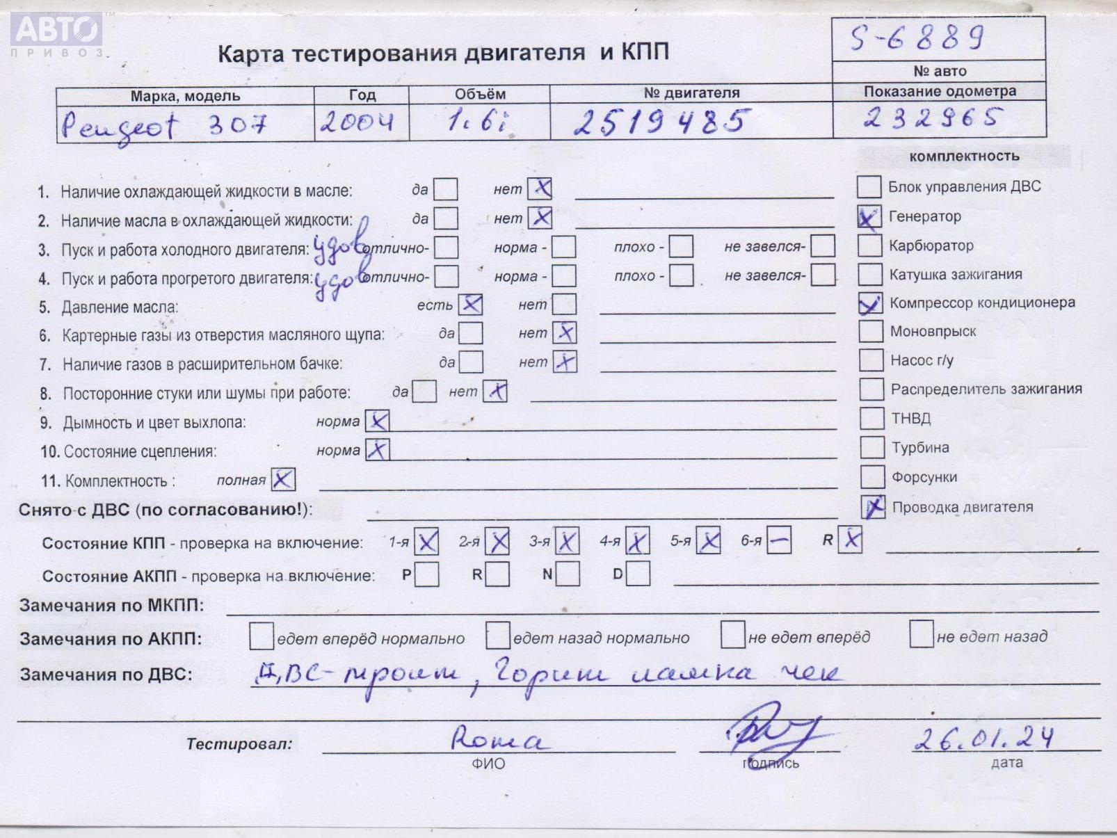 | Марка / Модель / Год: | Peugeot 307 2004 |