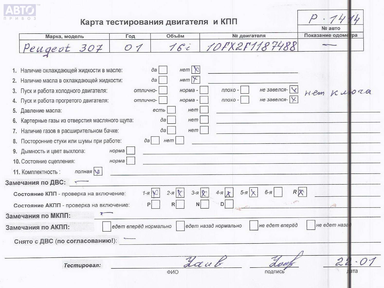 | Марка / Модель / Год: | Peugeot 307 2001 |
