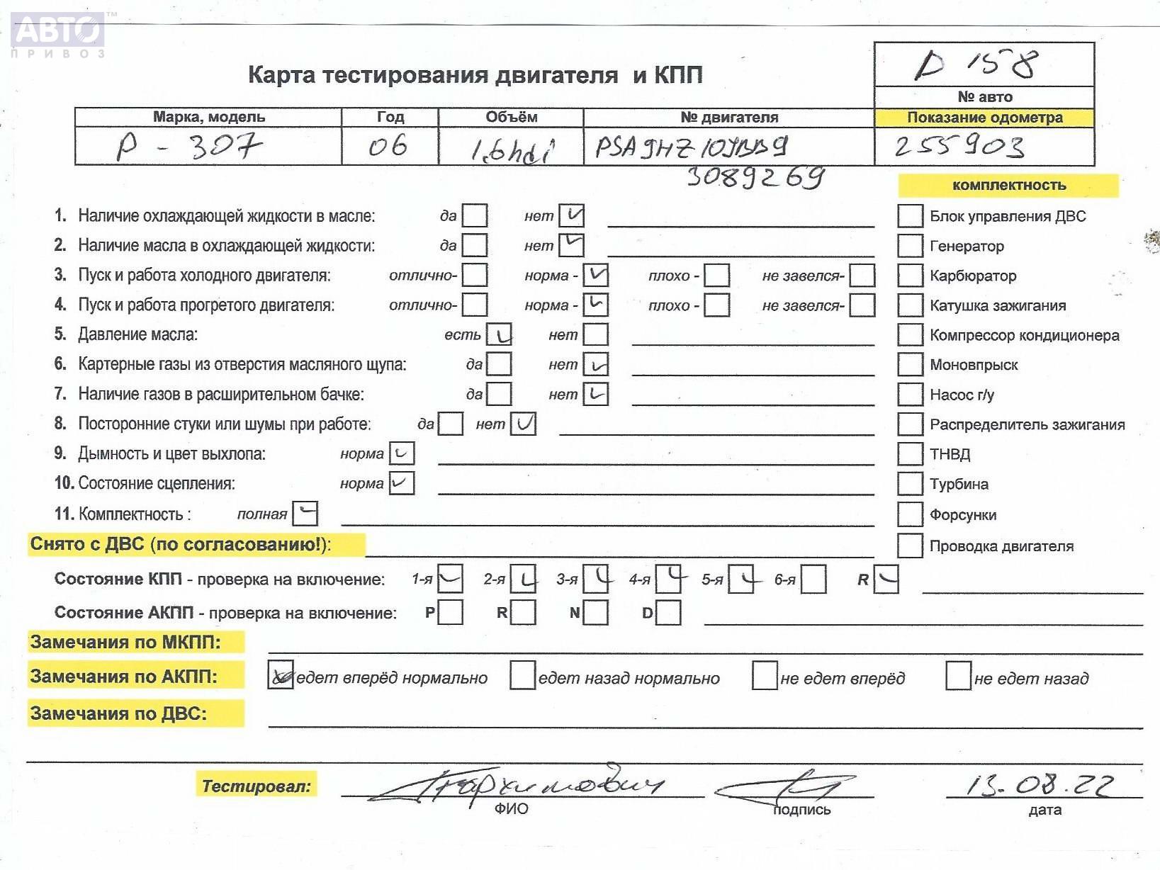 | Марка / Модель / Год: | Peugeot 307 2006 |
