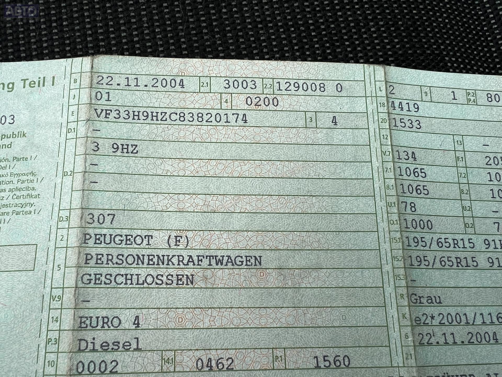 | Марка / Модель / Год: | Peugeot 307 2004 |