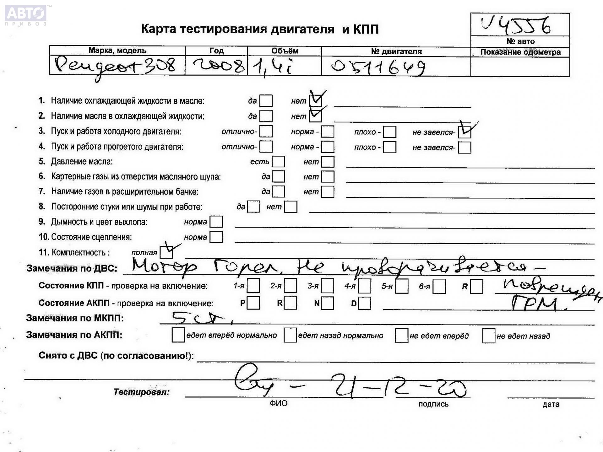 | Автомобиль / VIN: | V4556 VF34C8FSC55156518 |