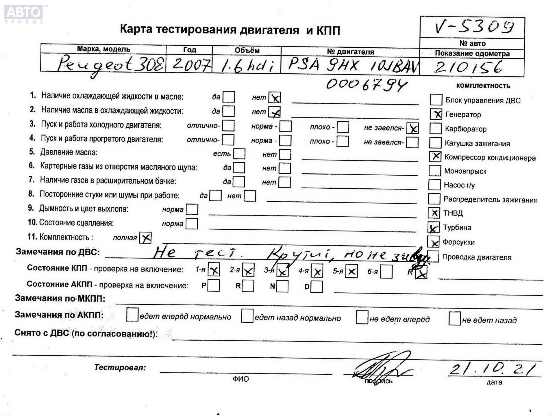 | Марка / Модель / Год: | Peugeot 308 T7 (2007-2013) 2007 |