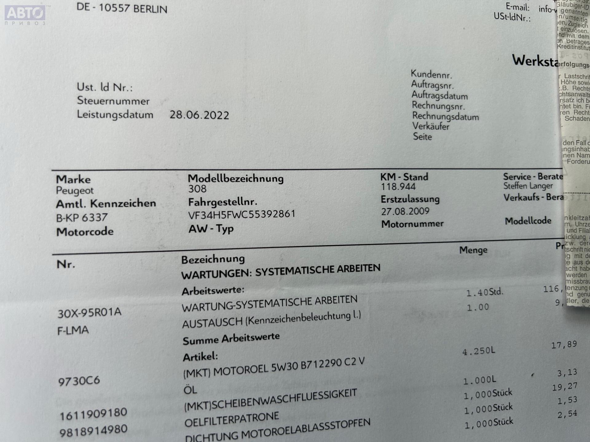 | Марка / Модель / Год: | Peugeot 308 T7 (2007-2013) 2008 |