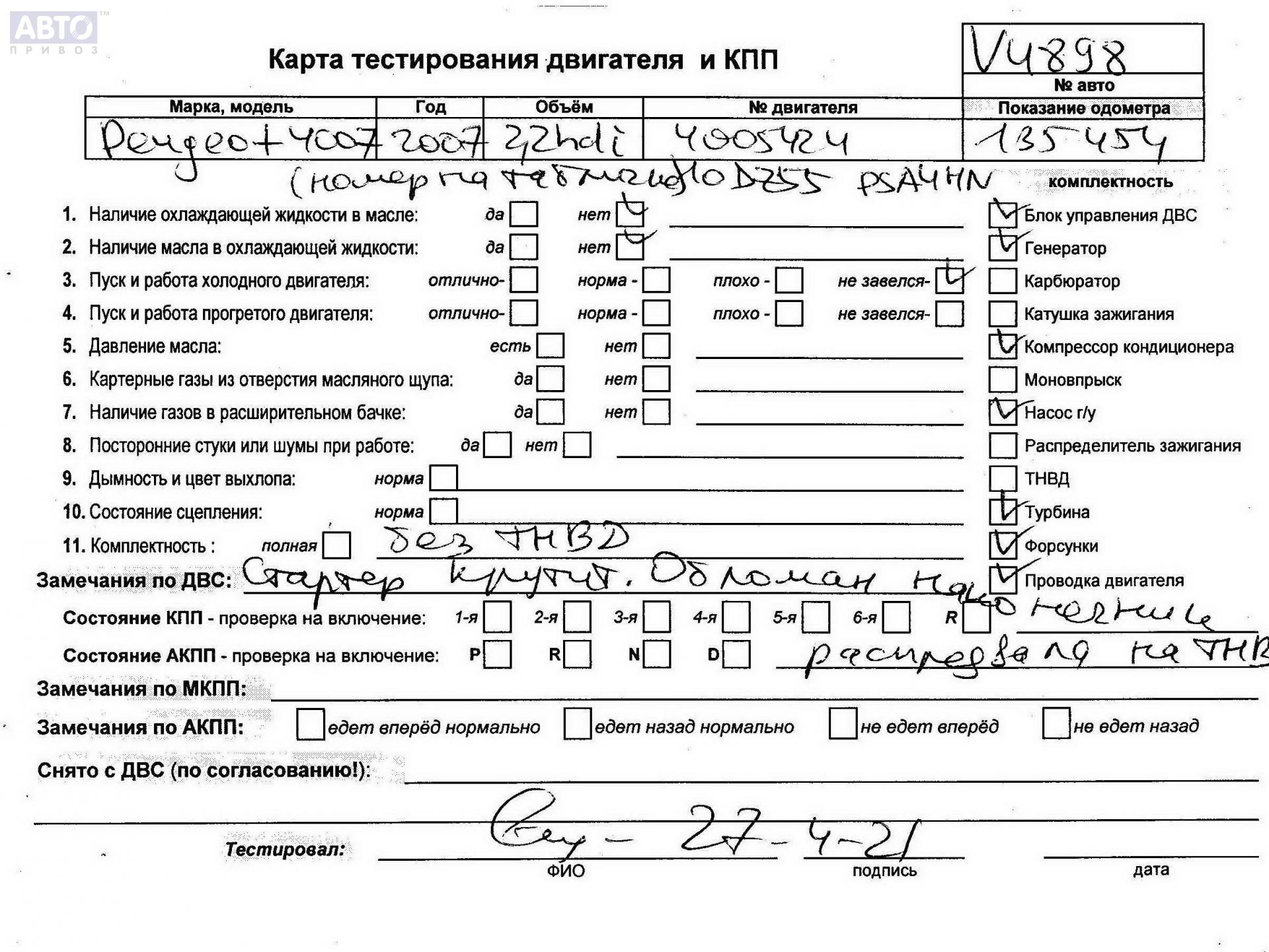 | Автомобиль / VIN: | V4898 VF3VV4HNH8U902804 |