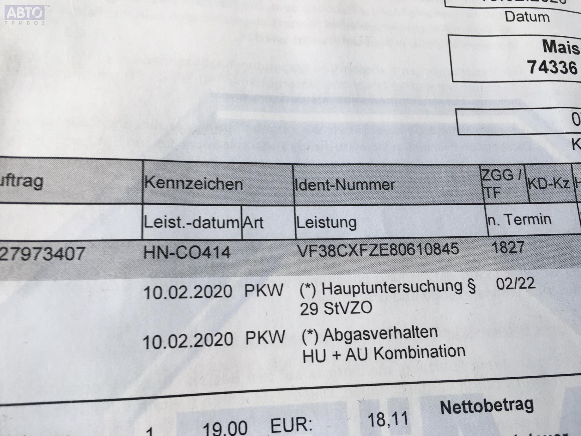 | Автомобиль / VIN: | S5626 VF38CXFZE80610845 |