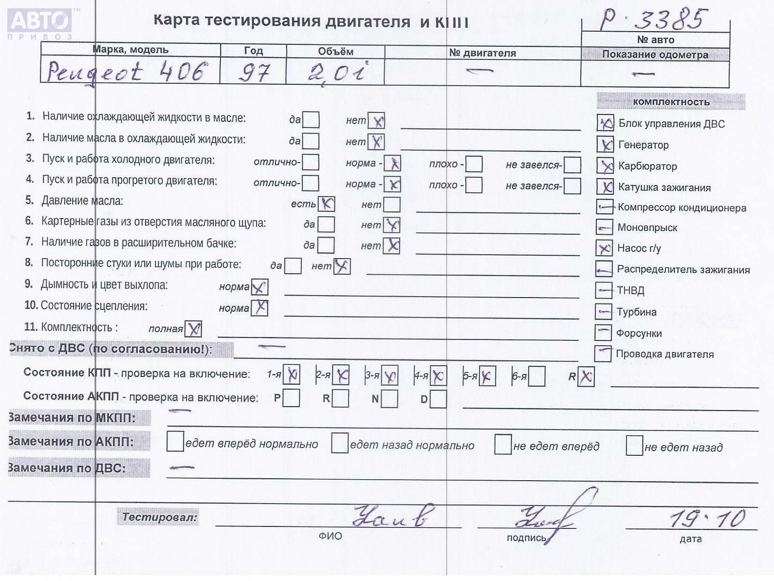 | Марка / Модель / Год: | Peugeot 406 1997 |
