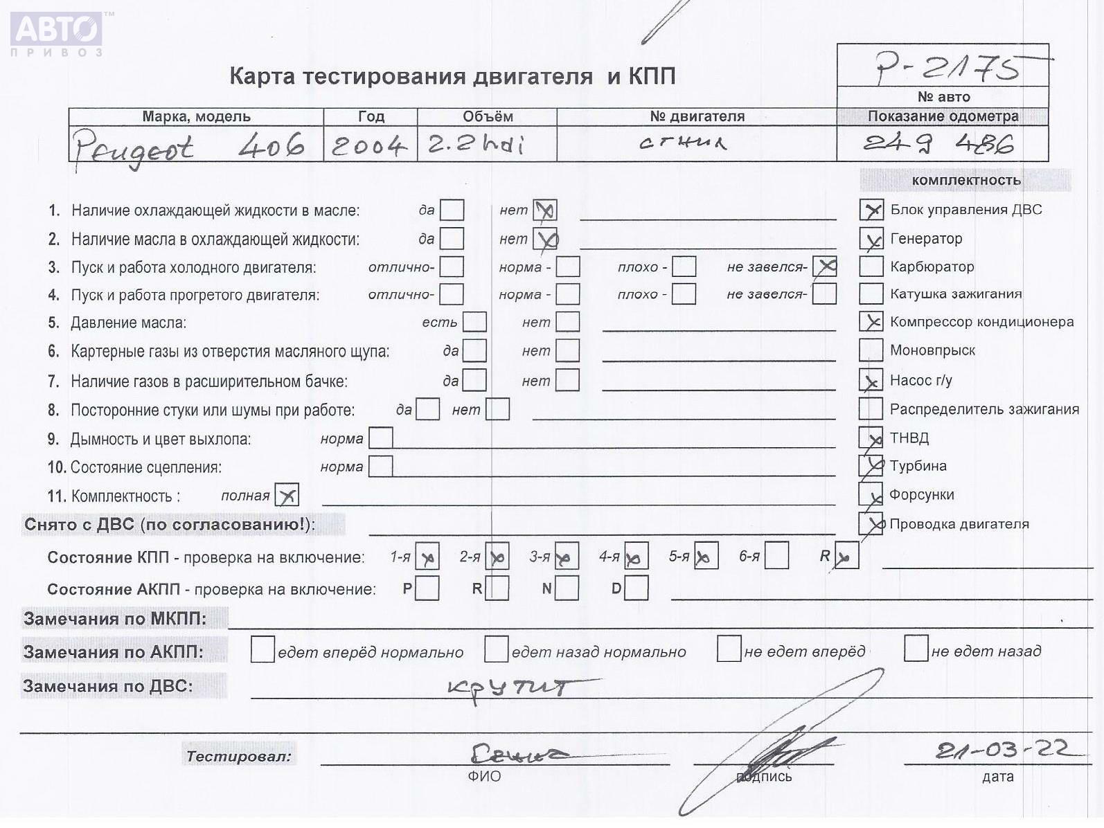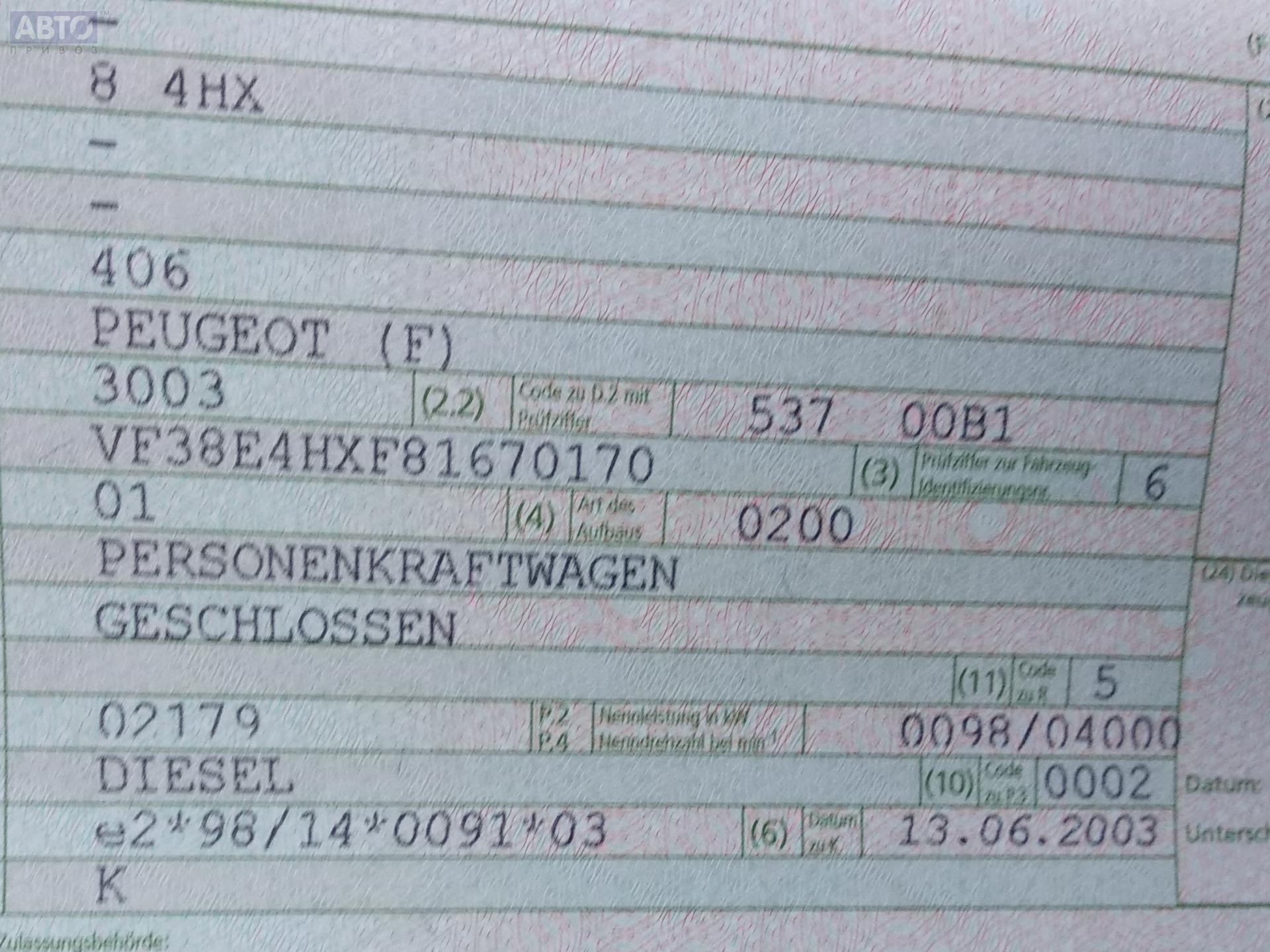 | Марка / Модель / Год: | Peugeot 406 2003 |