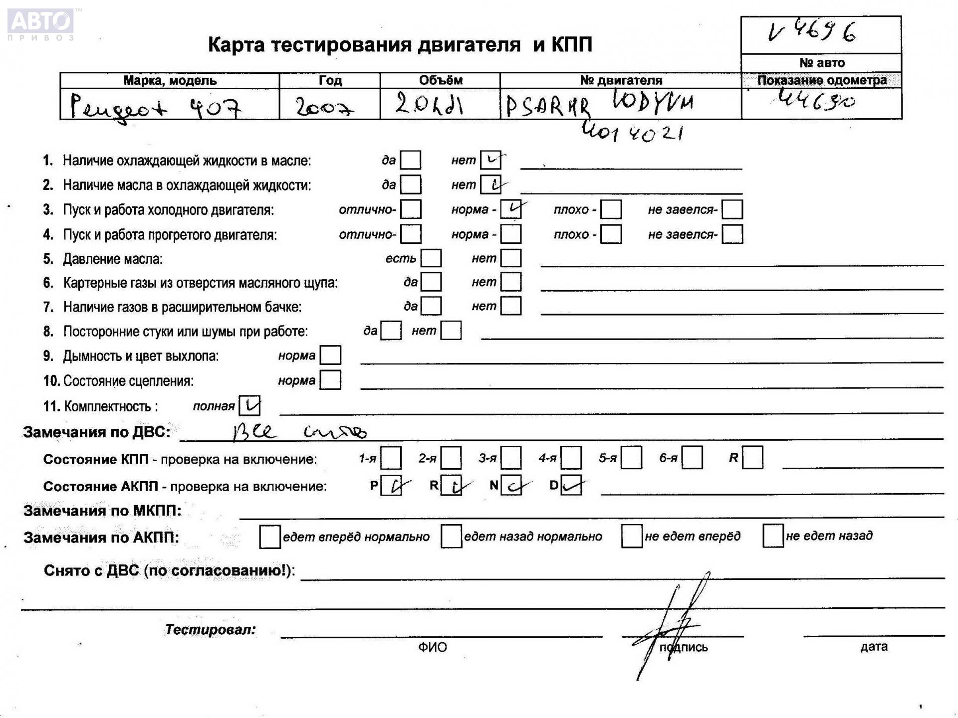 | Марка / Модель / Год: | Peugeot 407 2007 |