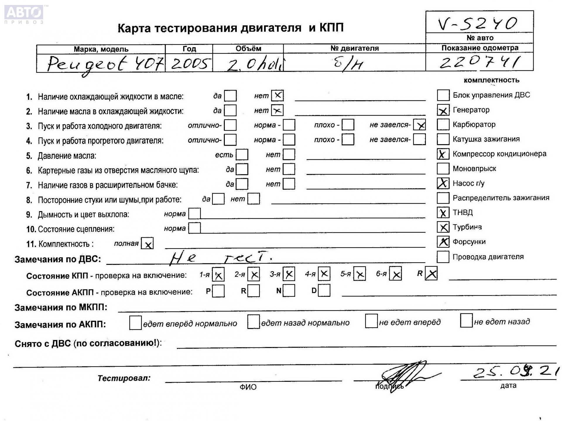 | Марка / Модель / Год: | Peugeot 407 2005 |