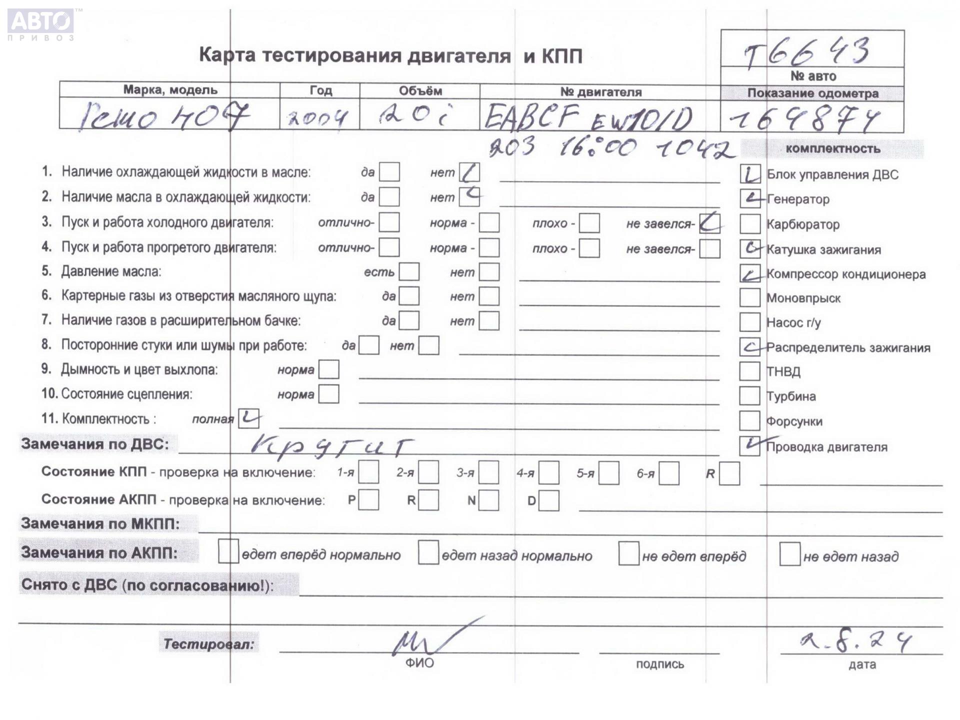 | Марка / Модель / Год: | Peugeot 407 2004 |