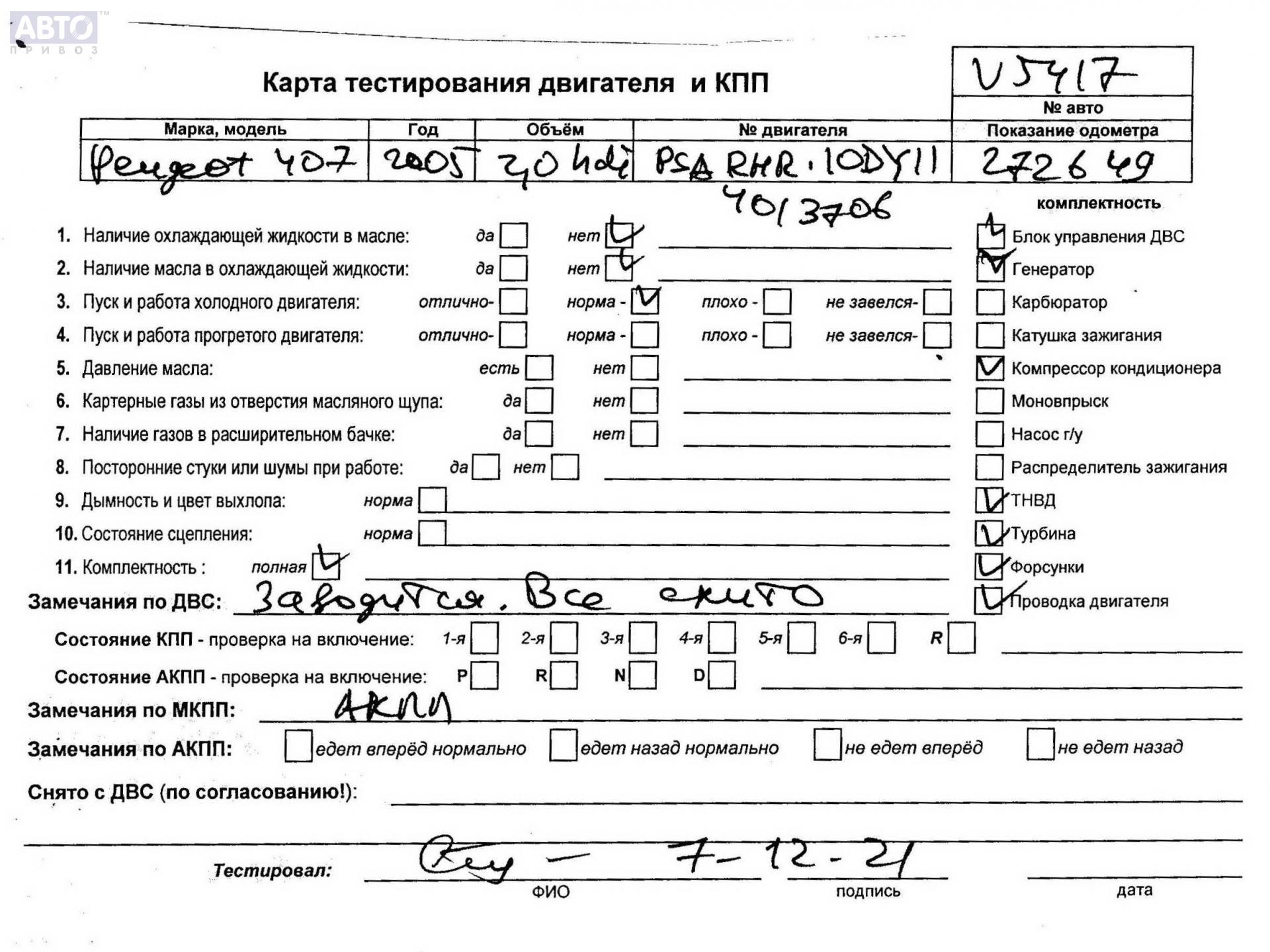 | Марка / Модель / Год: | Peugeot 407 2005 |